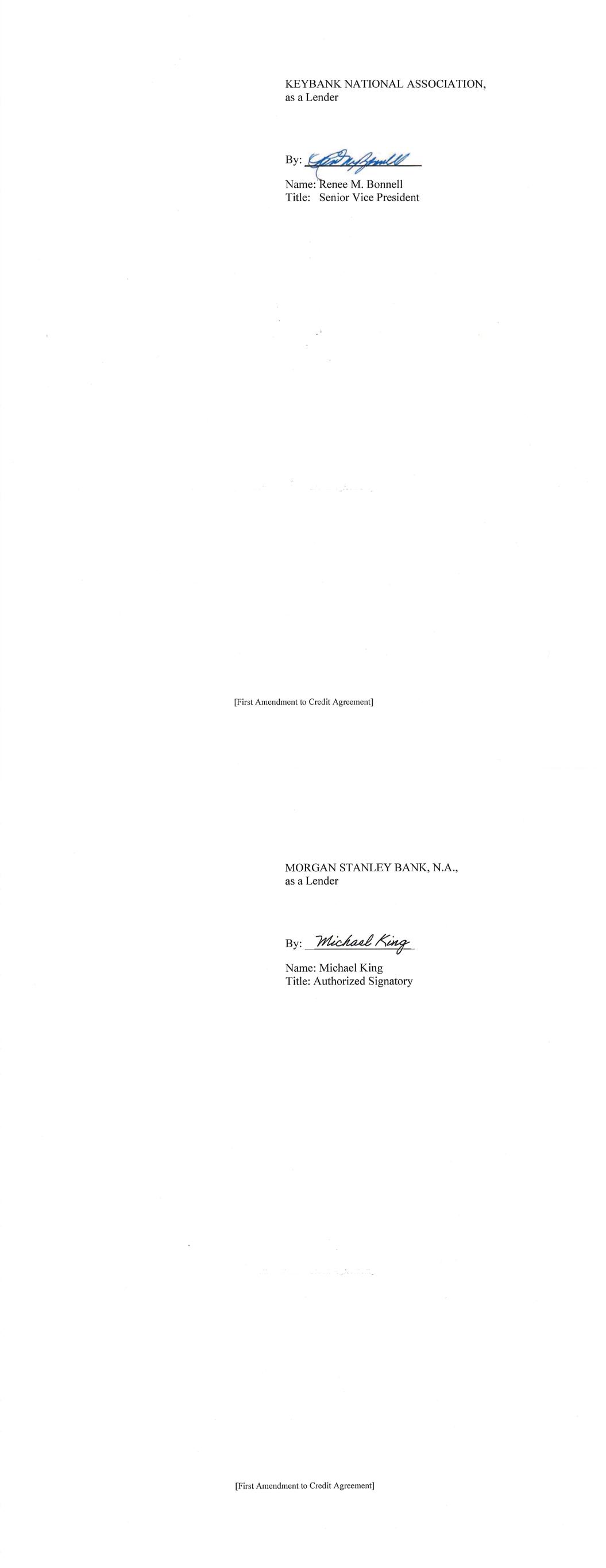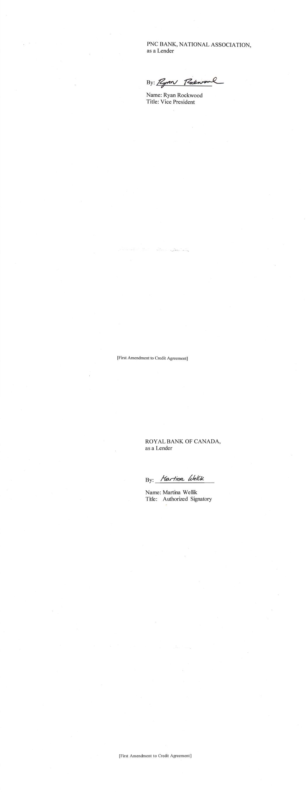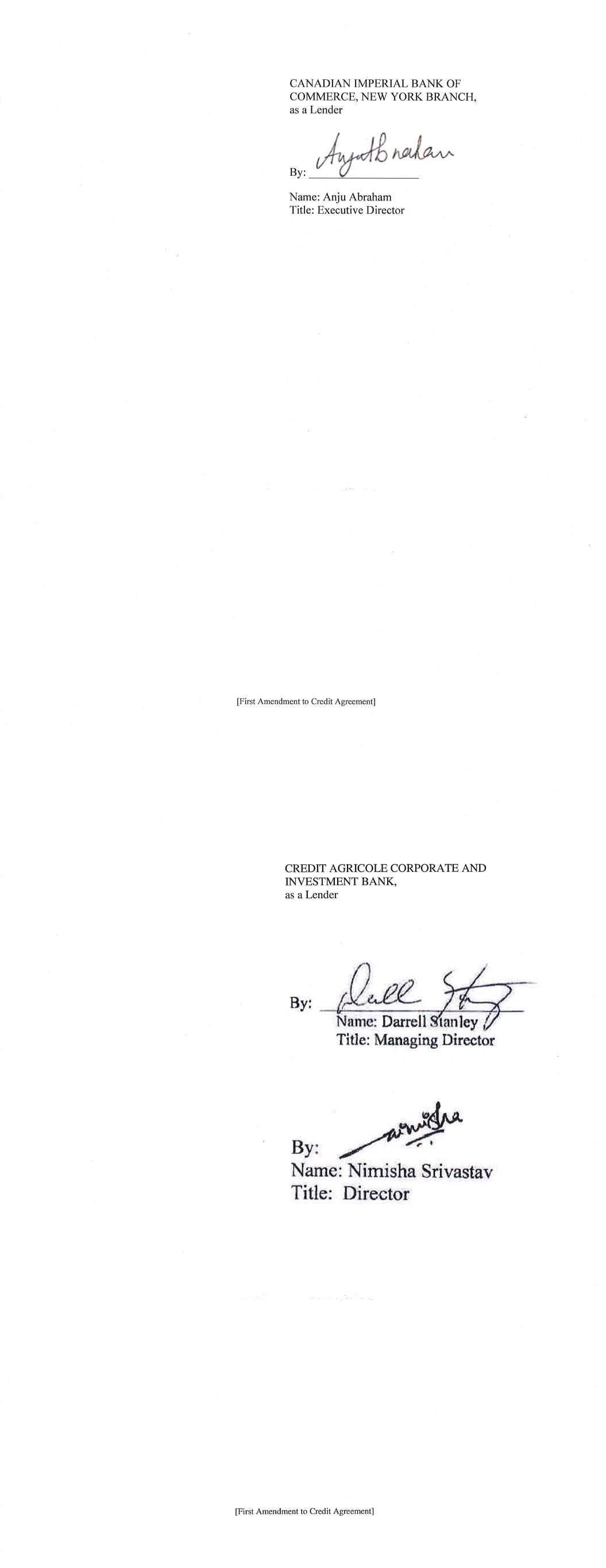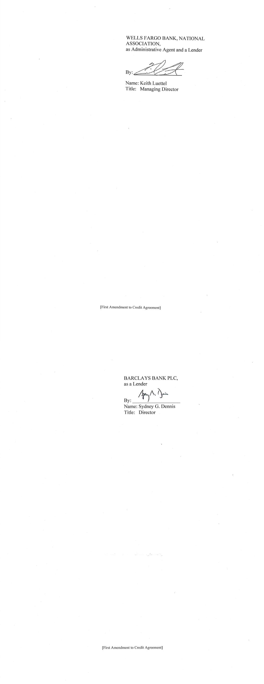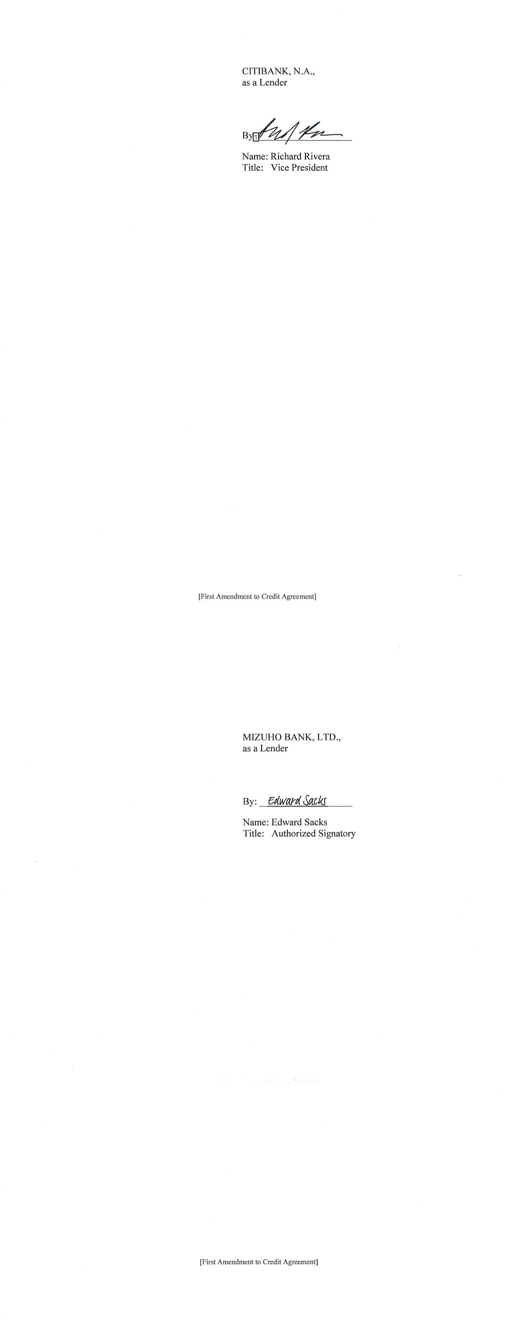 -3- AmericasActive:16779589.4 (f) The Administrative Agent shall have received copies or other evidence of such other approvals and such other opinions or documents as may be reasonably requested by the Administrative Agent or by any Lender through the Administrative Agent. SECTION 3. Representations and Warranties of Borrower. The Borrower represents and warrants as follows: (a) The execution, delivery and performance by each Borrower of this Amendment and the consummation by the Borrower of the transactions contemplated by this Amendment, are within the Borrower’s corporate powers, have been duly authorized by all necessary action, and do not contravene (i) the Borrower’s certificate of incorporation or by-laws, (ii) law binding or affecting the Borrower or (iii) any contractual restriction binding on or affecting the Borrower or any of its properties. (b) No authorization or approval or other action by, and no notice to or filing with, any Governmental Authority or any other third party is required for the due execution, delivery and performance by the Borrower of this Amendment. (c) This Amendment has been duly executed and delivered by the Borrower. Each of this Amendment and the Credit Agreement, as amended by this Amendment, constitutes the legal, valid and binding obligation of the Borrower, enforceable against the Borrower in accordance with its terms, except as the enforceability thereof may be limited by bankruptcy, insolvency, fraudulent conveyance or other similar laws affecting the enforcement of creditors’ rights in general, and except as the availability of the remedy of specific performance is subject to general principles of equity (regardless of whether such remedy is sought in a proceeding in equity or at law) and subject to requirements of reasonableness, good faith and fair dealing. SECTION 4. Fees, Expenses, Etc. Administrative Agent shall have received all reasonable out-of-pocket fees, costs and expenses incurred by the Administrative Agent in connection with the negotiation, preparation and execution of this Amendment. SECTION 5. Existing Eurodollar Rate Advances. Until the expiration of the Interest Period (as defined in the Existing Credit Agreement) applicable thereto, each Eurodollar Rate Advance (as defined in the Existing Credit Agreement) outstanding on the date hereof (i) shall continue to be subject to all of the terms of the Existing Credit Agreement applicable to such Eurodollar Rate Advance (without giving effect to the amendments contemplated hereby), and (ii) if still outstanding on the date of the expiration of such Interest Period, shall be converted on such date to a Base Rate Advance or SOFR Advance in accordance with the terms of the Credit Agreement. SECTION 6. Reference to and Effect on the Credit Agreement. (a) Upon the effectiveness of Section 1 hereof: (i) each reference in the Credit Agreement to “this Agreement”, “hereunder”, “hereof” or words of like import referring to the Credit Agreement shall mean and be a reference to the Credit Agreement as amended hereby, and (ii) each reference in the Loan Documents to the “Credit Agreement”, “thereunder”, “thereof” or words of -4- AmericasActive:16779589.4 like import referring to the Credit Agreement, shall mean and be a reference to the Credit Agreement as amended hereby. This Amendment shall constitute a Loan Document. (b) Except as specifically amended above, the Credit Agreement shall continue to be in full force and effect and is hereby in all respects ratified and confirmed. (c) The execution, delivery and performance of this Amendment shall not constitute a waiver of any provision of, or operate as a waiver of any right, power or remedy of the Administrative Agent or the Lenders, under the Credit Agreement or any of the other Loan Documents. (d) Nothing contained in this Amendment shall prejudice any right or remedy that the Administrative Agent or any Lender may now have or may have in the future under or in connection with the Credit Agreement or any other Loan Document, or any other instrument or agreement referred to therein. SECTION 7. Reaffirmation. The Borrower hereby reaffirms its obligations under the Credit Agreement (as amended by this Amendment) and each Loan Document to which it is a party. SECTION 8. Entire Agreement. This Agreement and the Loan Documents (including the Credit Agreement as amended by this Amendment) constitute the entire agreement among the parties hereto with respect to the subject matter hereof and thereof and supersede all other prior agreements and understandings, both written and verbal among the parties hereto or any of them with respect to the subject matter hereof. SECTION 9. Amendments; Modifications. Neither this Amendment nor any provision hereof may be waived, amended or modified, except in accordance with Section 8.01 of the Credit Agreement. SECTION 10. Incorporated Provisions. The provisions of Section 8.12 (“Jurisdiction, Etc.”) and Section 8.13 (“Waiver of Jury Trial”) of the Credit Agreement are hereby incorporated by reference into this Agreement, mutatis mutandis. SECTION 11. Execution in Counterparts. This Amendment may be executed in any number of counterparts and by different parties hereto in separate counterparts, each of which when so executed and delivered shall be deemed to be an original and all of which taken together shall constitute but one and the same instrument. Delivery of an executed counterpart of a signature page of this Amendment by telecopy, emailed pdf. or any other electronic means that reproduces an image of the actual executed signature page shall be effective as delivery of a manually executed counterpart of this Amendment. SECTION 12. Headings. Section headings in this Amendment are included herein for convenience of reference only and shall not constitute a part of this Amendment for any other purpose or be given any substantive effect. SECTION 13. Successors and Assigns