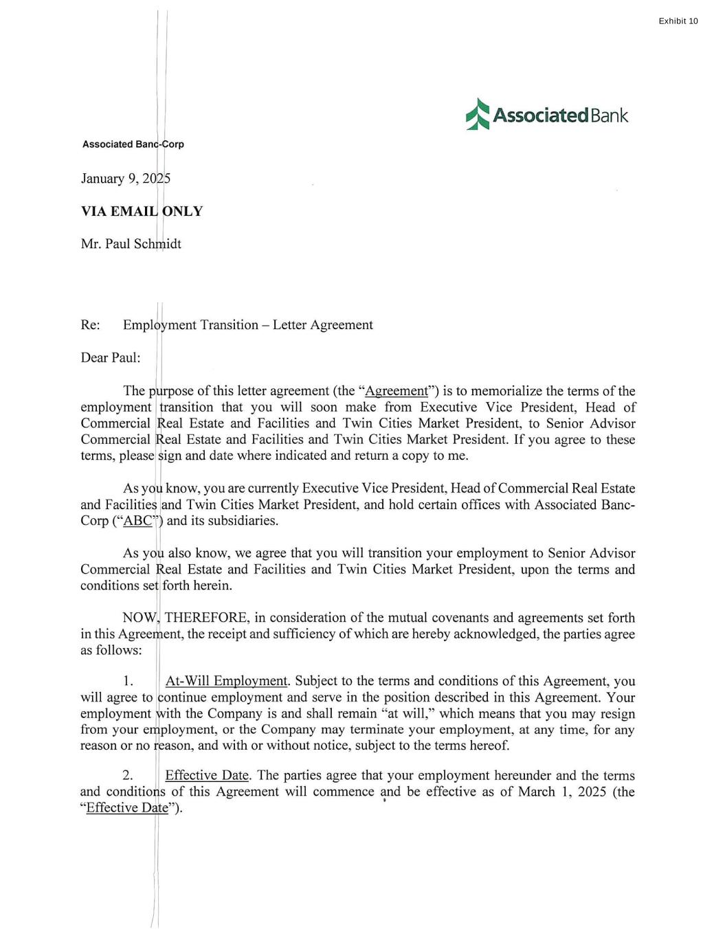 EX-10 2 paulschmidtemploymenttra.htm EX-10 paulschmidtemploymenttra