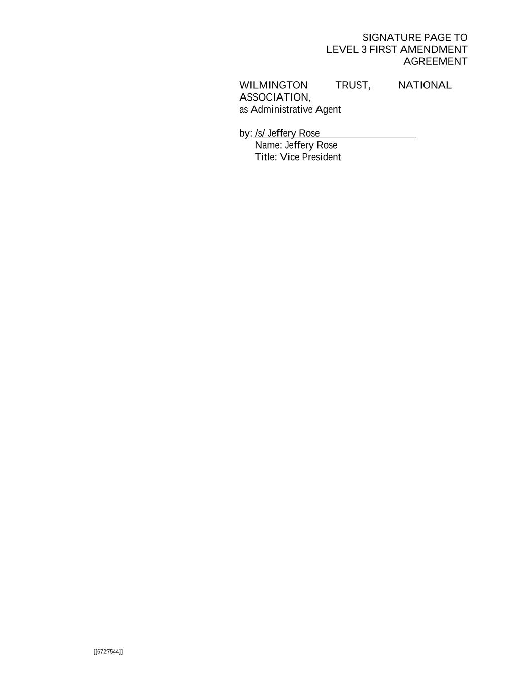 SIGNATURE PAGE TO LEVEL 3 FIRST AMENDMENT AGREEMENT [[6727544]] WILMINGTON TRUST, NATIONAL ASSOCIATION, as Administrative Agent by: /s/ Jeffery Rose Name: Jeffery Rose Title: Vice President