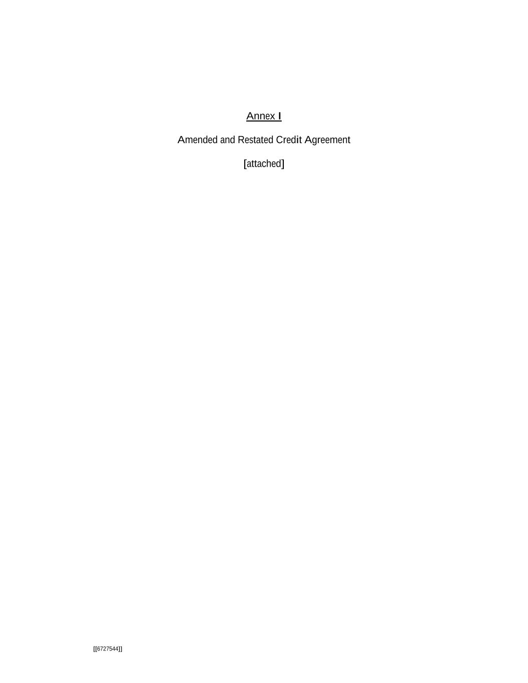 [[6727544]] Annex I Amended and Restated Credit Agreement [attached]