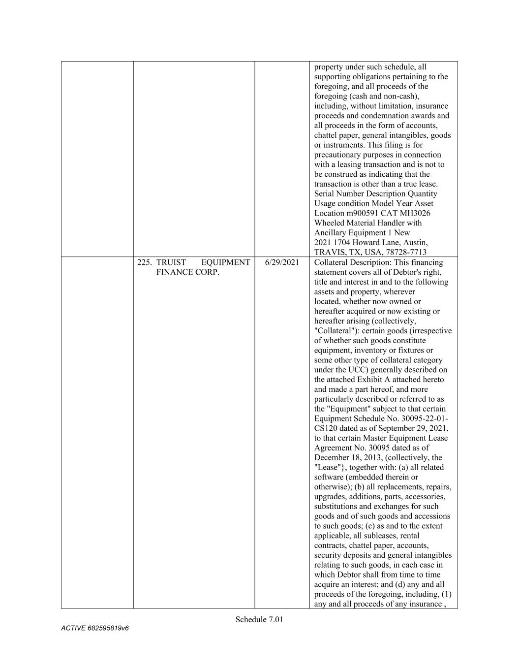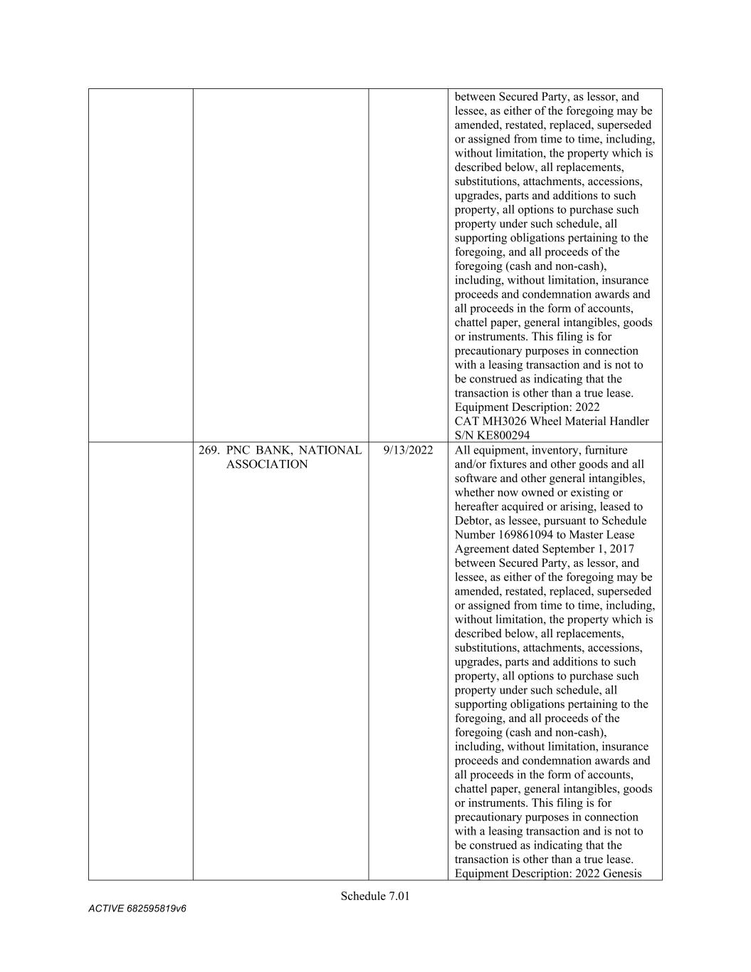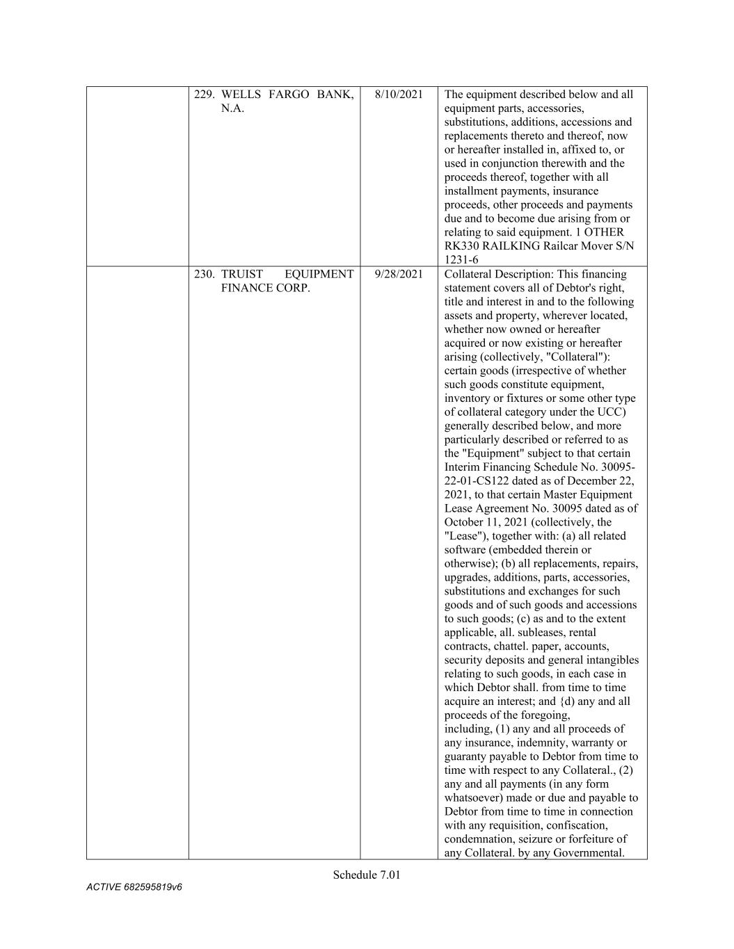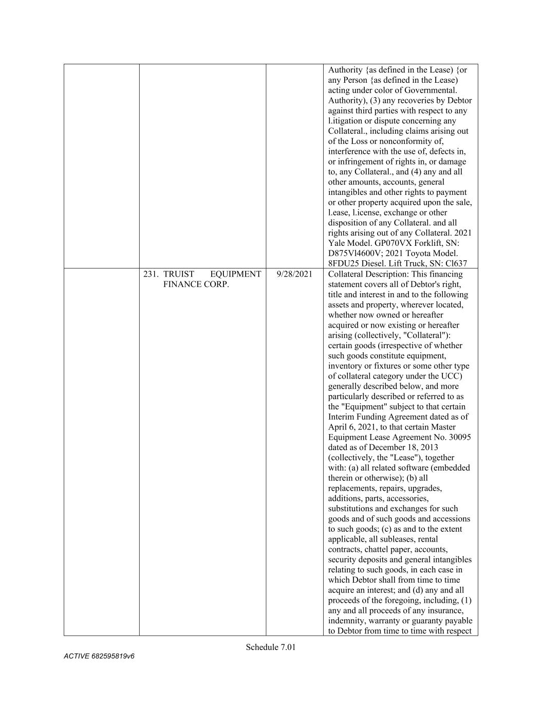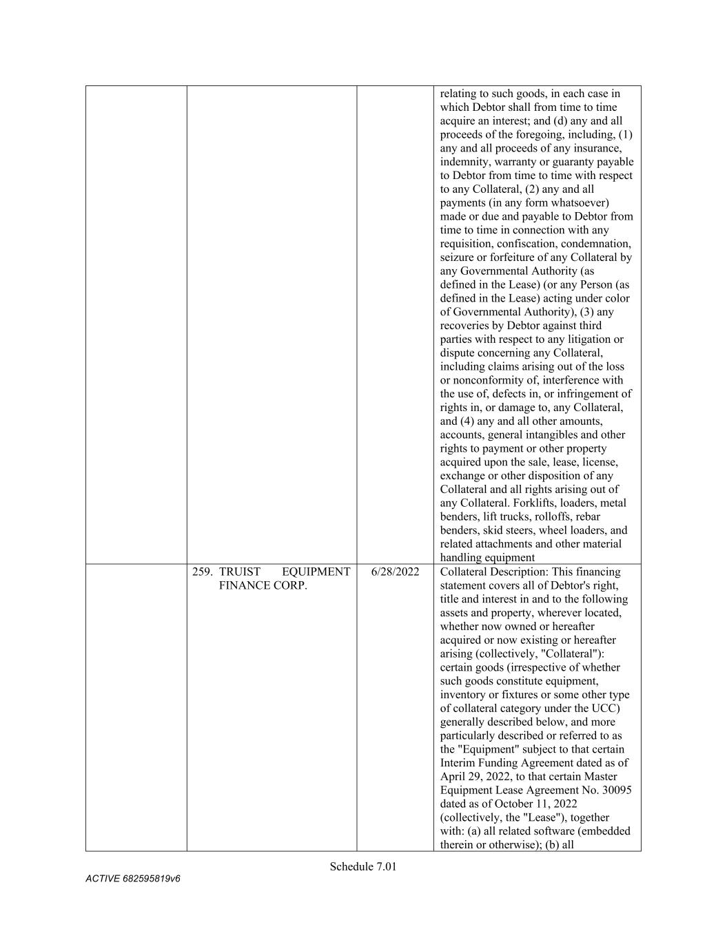 TABLE OF CONTENTS Section Page ii 5.01  Existence, Qualification and Power .................................................................................. 98  5.02  Authorization; No Contravention ..................................................................................... 98  5.03  Governmental Authorization; Other Consents .................................................................. 99  5.04  Binding Effect ................................................................................................................... 99  5.05  Financial Statements; No Material Adverse Effect; Casualty Events ............................... 99  5.06  Litigation ........................................................................................................................... 99  5.07  No Default......................................................................................................................... 99  5.08  Ownership of Property; Liens ......................................................................................... 100  5.09  Environmental Compliance ............................................................................................ 100  5.10  Insurance ......................................................................................................................... 100  5.11  Taxes ............................................................................................................................... 100  5.12  ERISA Compliance ......................................................................................................... 100  5.13  Subsidiaries; Equity Interests .......................................................................................... 101  5.14  Margin Regulations; Investment Company Act.............................................................. 101  5.15  Disclosure ....................................................................................................................... 102  5.16  Compliance with Laws ................................................................................................... 102  5.17  Intellectual Property; Licenses, Etc ................................................................................ 102  5.18  Solvency.......................................................................................................................... 102  5.19  Representations as to Foreign Obligors .......................................................................... 102  5.20  Sanctions Concerns and Anti-Corruption ....................................................................... 104  5.21  Collateral Representations. ............................................................................................. 104  5.22  Affected Financial Institution.. ....................................................................................... 105  5.23  Covered Entities. ............................................................................................................. 105  5.24  Beneficial Ownership Certification.. .............................................................................. 105  ARTICLE VI. AFFIRMATIVE COVENANTS ...................................................................................... 105  6.01  Financial Statements ....................................................................................................... 105  6.02  Certificates; Other Information ....................................................................................... 106  6.03  Notices ............................................................................................................................ 108  6.04  Payment of Obligations .................................................................................................. 108  6.05  Preservation of Existence, Etc ........................................................................................ 108  6.06  Maintenance of Properties .............................................................................................. 108  6.07  Maintenance of Insurance ............................................................................................... 109  6.08  Compliance with Laws ................................................................................................... 109  6.09  Books and Records ......................................................................................................... 109  6.10  Inspection Rights ............................................................................................................ 109  6.11  Use of Proceeds .............................................................................................................. 109  6.12  Compliance with Environmental Laws ........................................................................... 109  6.13  Approvals and Authorizations ........................................................................................ 110  6.14  Notices Regarding Subsidiaries; Covenant to Guarantee and Give Security; Scope of Collateral .......................................................................................................... 110  6.15  Further Assurances ......................................................................................................... 111  6.16  Corporate Ratings ........................................................................................................... 111  6.17  Post-Closing Matters ....................................................................................................... 111  6.18  Pari Passu Ranking ......................................................................................................... 111  6.19  Anti-Money Laundering Laws; Anti-Corruption Laws .............................................
