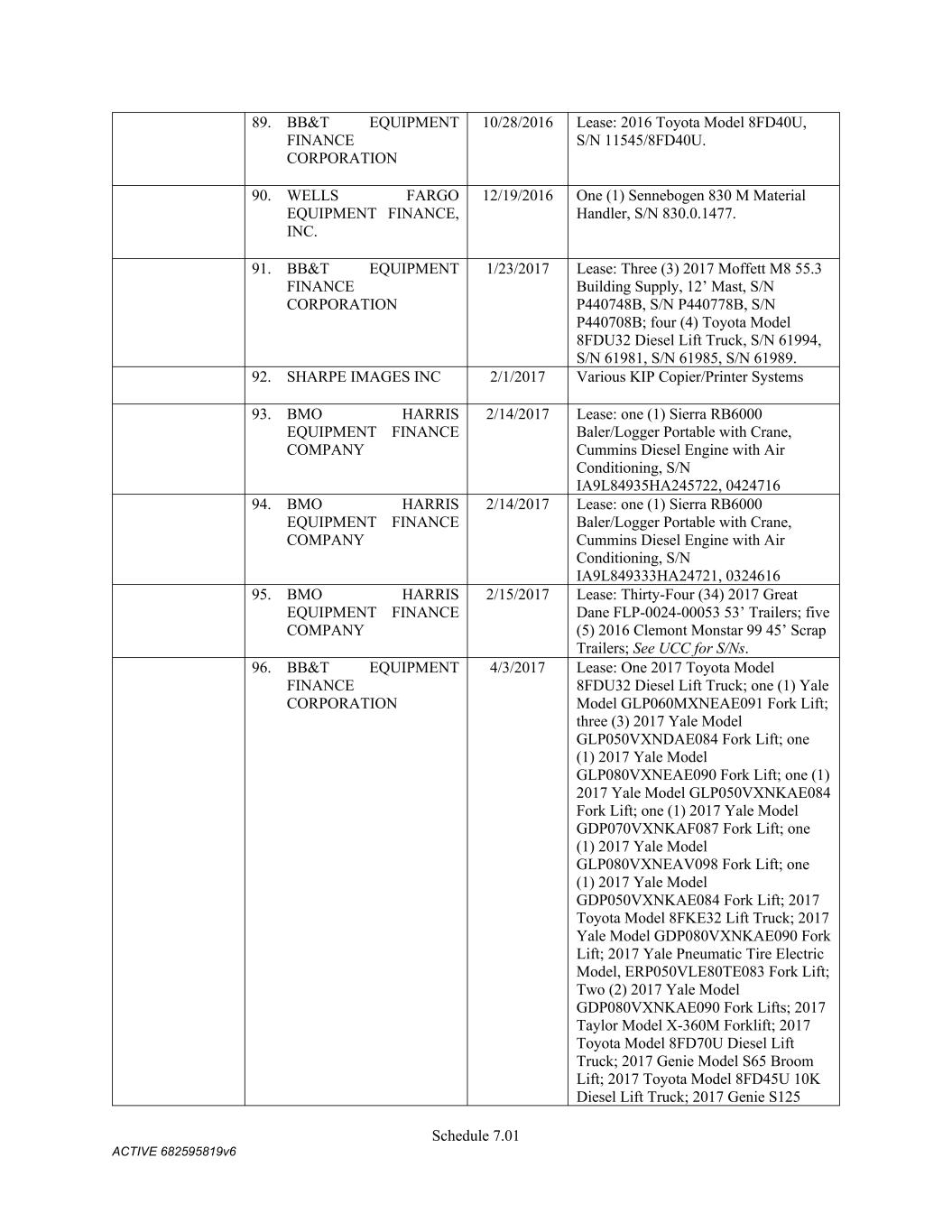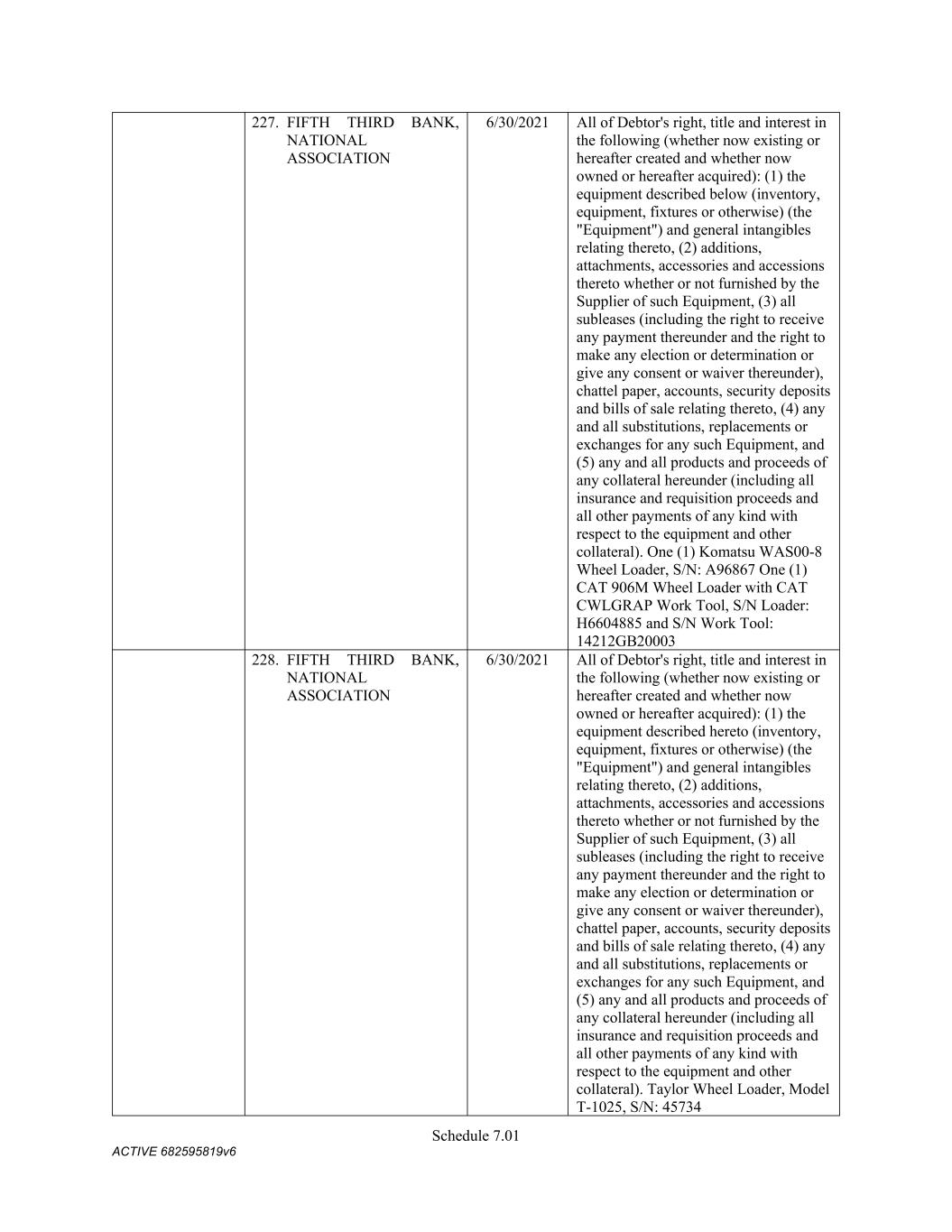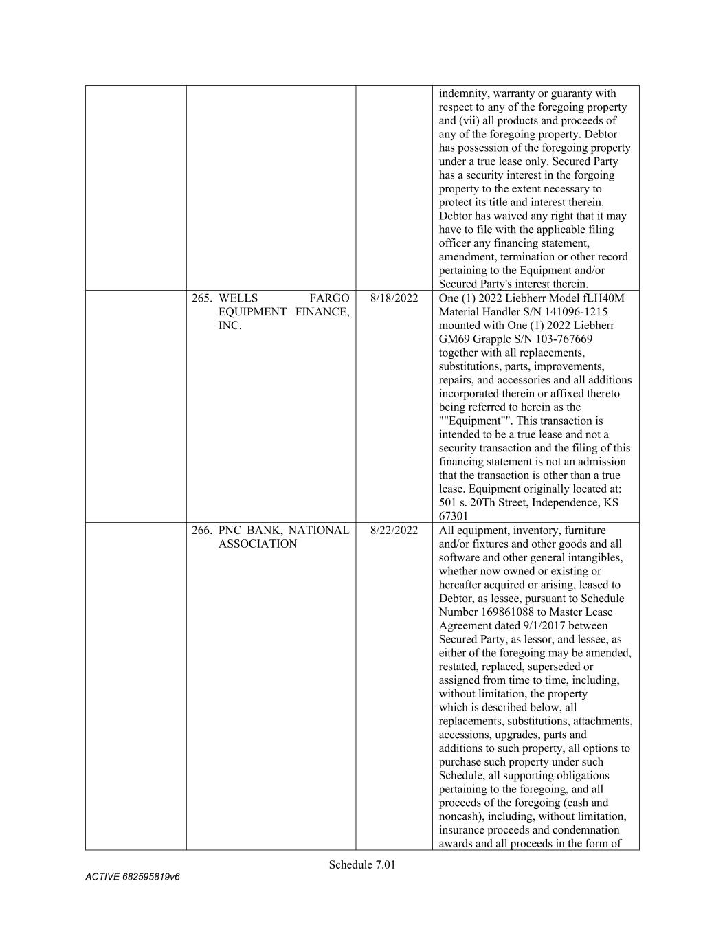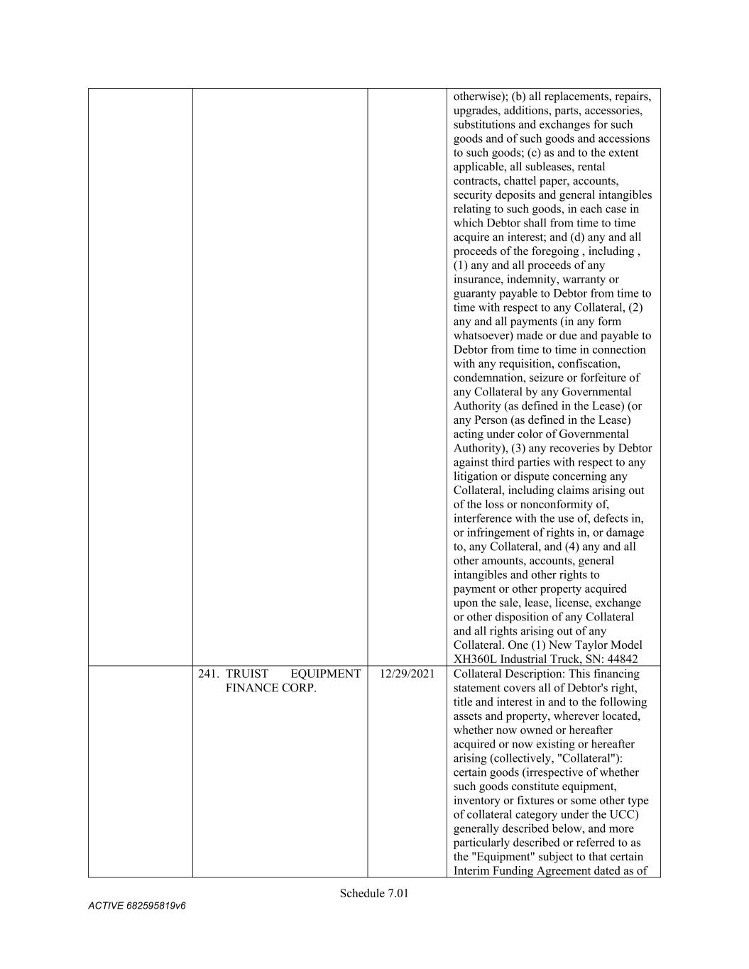 TABLE OF CONTENTS Section Page ii 5.01  Existence, Qualification and Power .................................................................................. 98  5.02  Authorization; No Contravention ..................................................................................... 98  5.03  Governmental Authorization; Other Consents .................................................................. 99  5.04  Binding Effect ................................................................................................................... 99  5.05  Financial Statements; No Material Adverse Effect; Casualty Events ............................... 99  5.06  Litigation ........................................................................................................................... 99  5.07  No Default......................................................................................................................... 99  5.08  Ownership of Property; Liens ......................................................................................... 100  5.09  Environmental Compliance ............................................................................................ 100  5.10  Insurance ......................................................................................................................... 100  5.11  Taxes ............................................................................................................................... 100  5.12  ERISA Compliance ......................................................................................................... 100  5.13  Subsidiaries; Equity Interests .......................................................................................... 101  5.14  Margin Regulations; Investment Company Act.............................................................. 101  5.15  Disclosure ....................................................................................................................... 102  5.16  Compliance with Laws ................................................................................................... 102  5.17  Intellectual Property; Licenses, Etc ................................................................................ 102  5.18  Solvency.......................................................................................................................... 102  5.19  Representations as to Foreign Obligors .......................................................................... 102  5.20  Sanctions Concerns and Anti-Corruption ....................................................................... 104  5.21  Collateral Representations. ............................................................................................. 104  5.22  Affected Financial Institution.. ....................................................................................... 105  5.23  Covered Entities. ............................................................................................................. 105  5.24  Beneficial Ownership Certification.. .............................................................................. 105  ARTICLE VI. AFFIRMATIVE COVENANTS ...................................................................................... 105  6.01  Financial Statements ....................................................................................................... 105  6.02  Certificates; Other Information ....................................................................................... 106  6.03  Notices ............................................................................................................................ 108  6.04  Payment of Obligations .................................................................................................. 108  6.05  Preservation of Existence, Etc ........................................................................................ 108  6.06  Maintenance of Properties .............................................................................................. 108  6.07  Maintenance of Insurance ............................................................................................... 109  6.08  Compliance with Laws ................................................................................................... 109  6.09  Books and Records ......................................................................................................... 109  6.10  Inspection Rights ............................................................................................................ 109  6.11  Use of Proceeds .............................................................................................................. 109  6.12  Compliance with Environmental Laws ........................................................................... 109  6.13  Approvals and Authorizations ........................................................................................ 110  6.14  Notices Regarding Subsidiaries; Covenant to Guarantee and Give Security; Scope of Collateral .......................................................................................................... 110  6.15  Further Assurances ......................................................................................................... 111  6.16  Corporate Ratings ........................................................................................................... 111  6.17  Post-Closing Matters ....................................................................................................... 111  6.18  Pari Passu Ranking ......................................................................................................... 111  6.19  Anti-Money Laundering Laws; Anti-Corruption Laws .............................................
