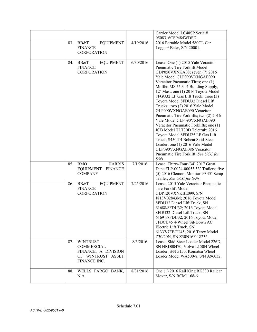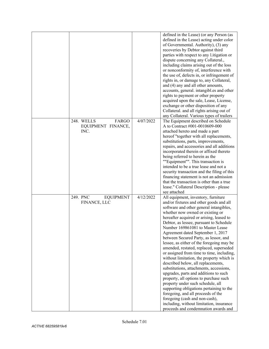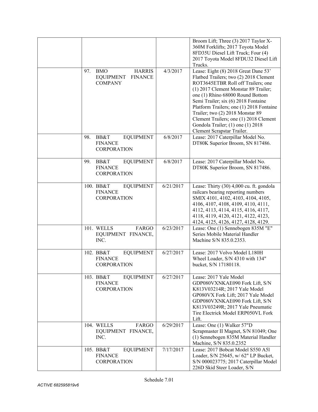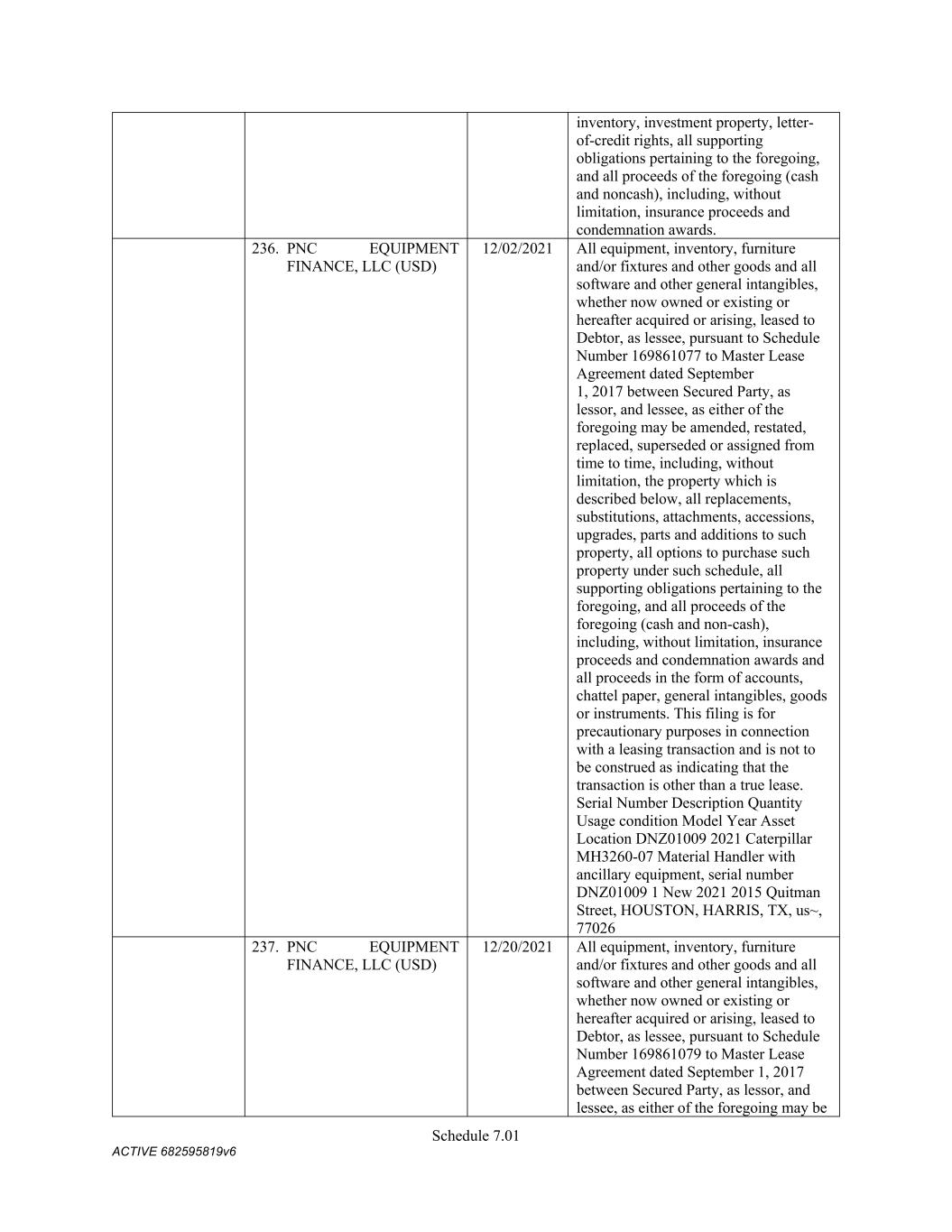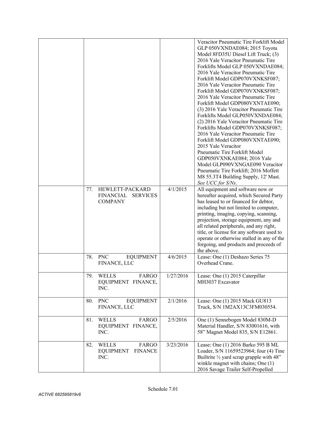 TABLE OF CONTENTS Section Page ii 5.01  Existence, Qualification and Power .................................................................................. 98  5.02  Authorization; No Contravention ..................................................................................... 98  5.03  Governmental Authorization; Other Consents .................................................................. 99  5.04  Binding Effect ................................................................................................................... 99  5.05  Financial Statements; No Material Adverse Effect; Casualty Events ............................... 99  5.06  Litigation ........................................................................................................................... 99  5.07  No Default......................................................................................................................... 99  5.08  Ownership of Property; Liens ......................................................................................... 100  5.09  Environmental Compliance ............................................................................................ 100  5.10  Insurance ......................................................................................................................... 100  5.11  Taxes ............................................................................................................................... 100  5.12  ERISA Compliance ......................................................................................................... 100  5.13  Subsidiaries; Equity Interests .......................................................................................... 101  5.14  Margin Regulations; Investment Company Act.............................................................. 101  5.15  Disclosure ....................................................................................................................... 102  5.16  Compliance with Laws ................................................................................................... 102  5.17  Intellectual Property; Licenses, Etc ................................................................................ 102  5.18  Solvency.......................................................................................................................... 102  5.19  Representations as to Foreign Obligors .......................................................................... 102  5.20  Sanctions Concerns and Anti-Corruption ....................................................................... 104  5.21  Collateral Representations. ............................................................................................. 104  5.22  Affected Financial Institution.. ....................................................................................... 105  5.23  Covered Entities. ............................................................................................................. 105  5.24  Beneficial Ownership Certification.. .............................................................................. 105  ARTICLE VI. AFFIRMATIVE COVENANTS ...................................................................................... 105  6.01  Financial Statements ....................................................................................................... 105  6.02  Certificates; Other Information ....................................................................................... 106  6.03  Notices ............................................................................................................................ 108  6.04  Payment of Obligations .................................................................................................. 108  6.05  Preservation of Existence, Etc ........................................................................................ 108  6.06  Maintenance of Properties .............................................................................................. 108  6.07  Maintenance of Insurance ............................................................................................... 109  6.08  Compliance with Laws ................................................................................................... 109  6.09  Books and Records ......................................................................................................... 109  6.10  Inspection Rights ............................................................................................................ 109  6.11  Use of Proceeds .............................................................................................................. 109  6.12  Compliance with Environmental Laws ........................................................................... 109  6.13  Approvals and Authorizations ........................................................................................ 110  6.14  Notices Regarding Subsidiaries; Covenant to Guarantee and Give Security; Scope of Collateral .......................................................................................................... 110  6.15  Further Assurances ......................................................................................................... 111  6.16  Corporate Ratings ........................................................................................................... 111  6.17  Post-Closing Matters ....................................................................................................... 111  6.18  Pari Passu Ranking ......................................................................................................... 111  6.19  Anti-Money Laundering Laws; Anti-Corruption Laws .............................................