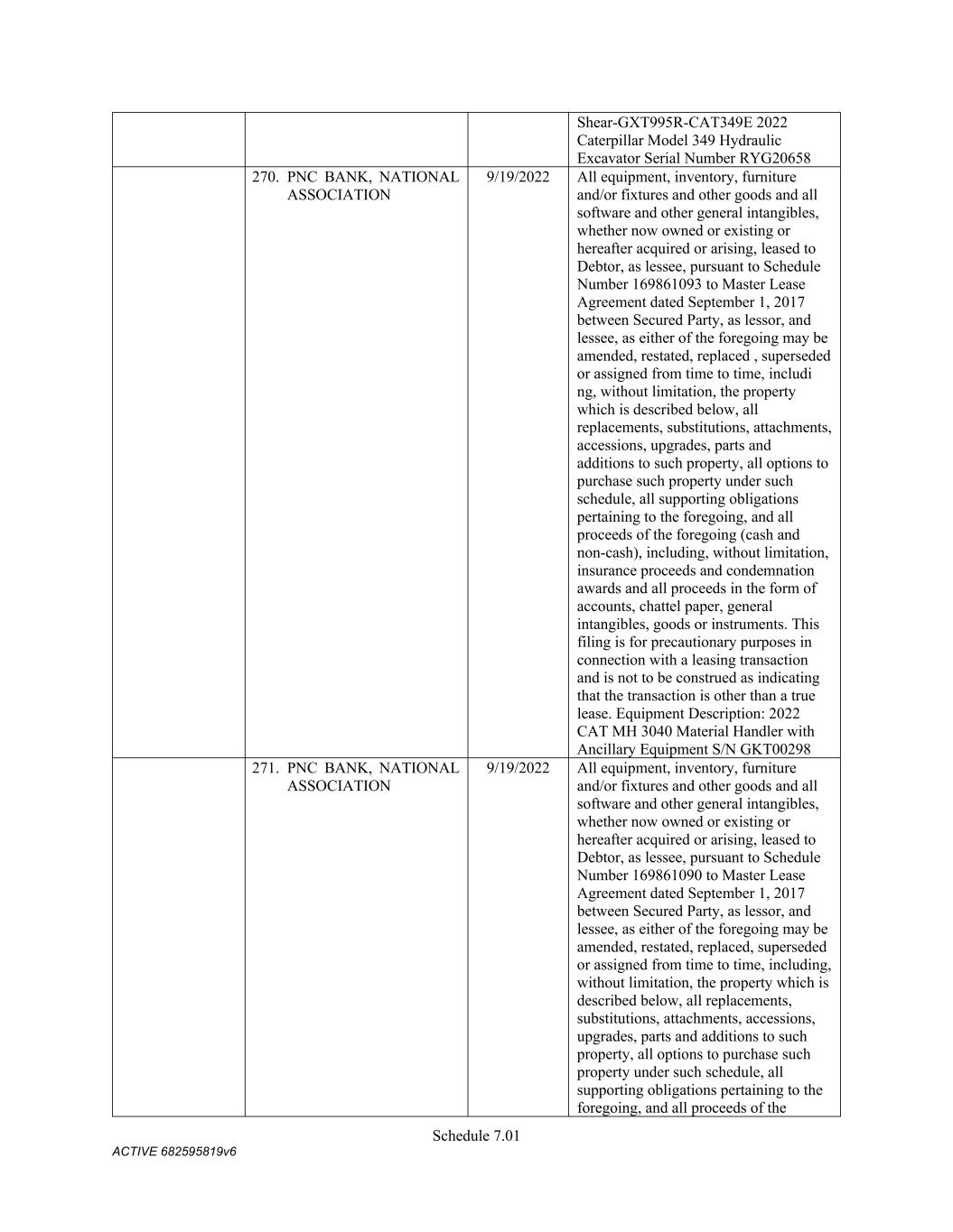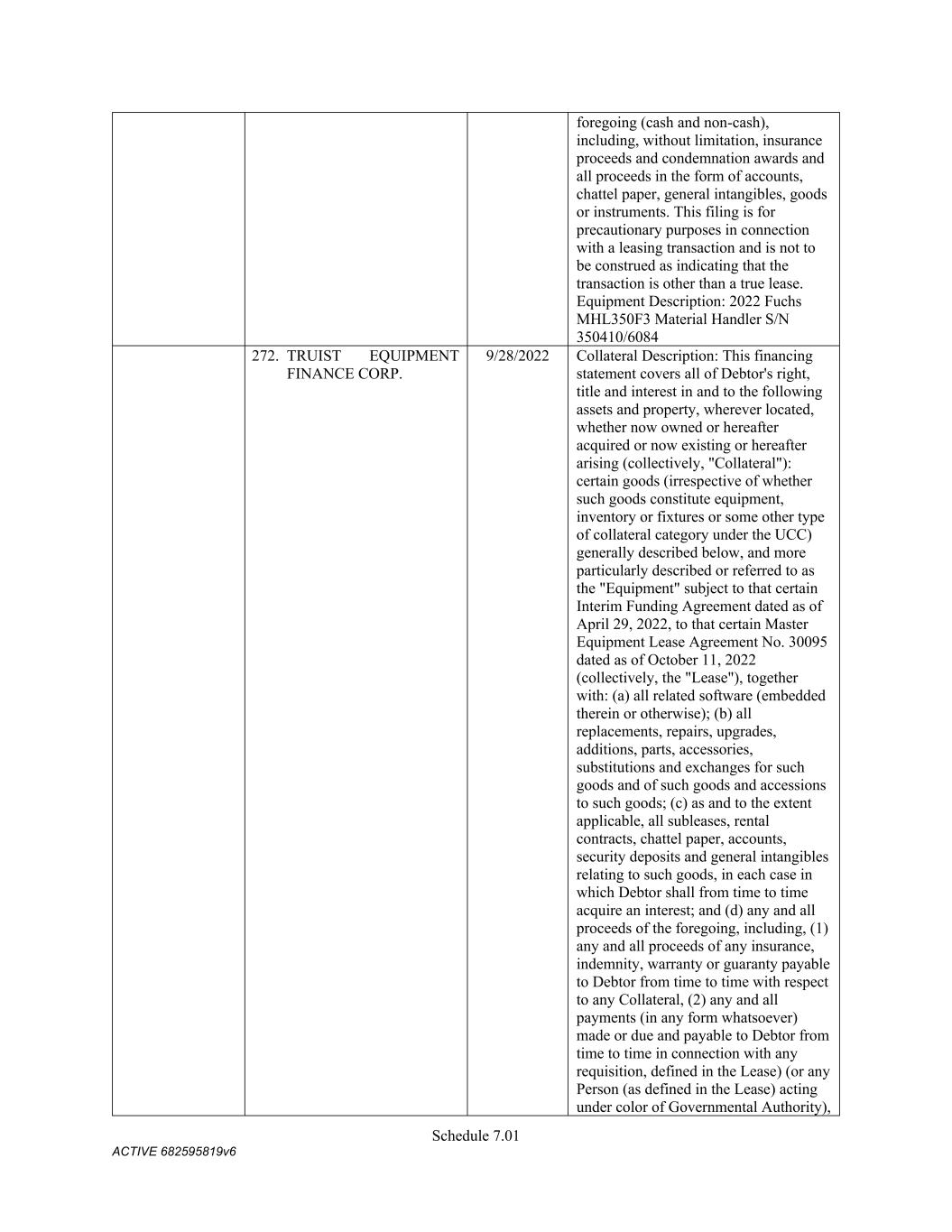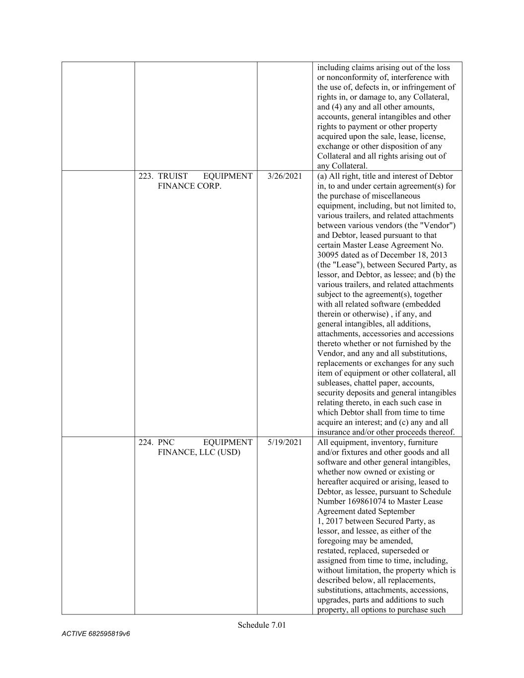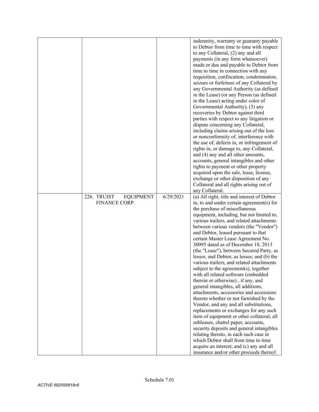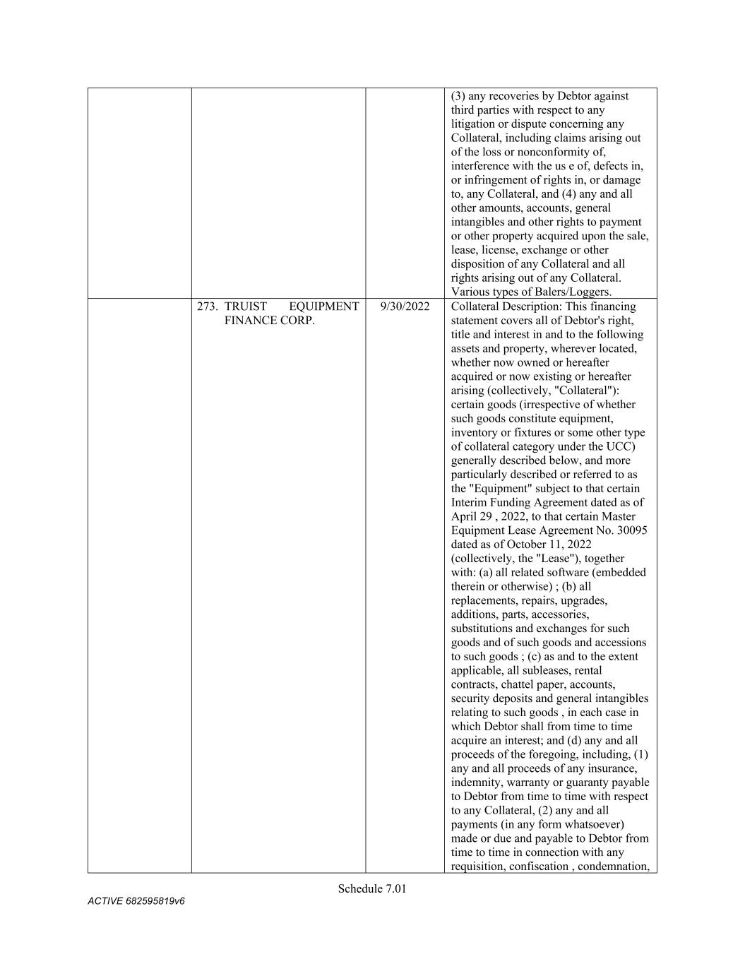 7 pursuant to this Section shall be assigned to the Administrative Agent, for the benefit of the Secured Parties. (f) Change in Names; Corporate Structure or Location. Not (i) change its jurisdiction of organization or formation, as applicable, or the location of its chief executive office from that identified on Schedule 3(c) or (ii) change its legal name, identity or corporate or organizational structure to such an extent that any financing statement filed by the Administrative Agent in connection with this Agreement would become seriously misleading within the meaning of the UCC; provided that a Grantor may make any change described in clause (i) or (ii) so long as at least thirty (30) days (or such later time as may be determined by the Administrative Agent in its sole discretion) prior to taking such action, such Grantor notifies the Administrative Agent in writing and delivers to the Administrative Agent (x) all additional financing statements and other instruments and documents reasonably requested by the Administrative Agent to maintain the validity, perfection and priority of the Administrative Agent’s security interest in the Collateral of such Grantor and (y) if applicable, a written supplement to the Schedules of this Agreement (upon delivery of which, the Schedules of this Agreement will be deemed amended thereby). (g) Maintenance of Insurance. The primary global liability insurance and primary global property insurance of the Company shall cover the Collateral until such time as the Secured Obligations (other than the Excluded Obligations) have been paid in full, the Commitments have expired or been terminated, and no Letters of Credit remain outstanding (other than any Letters of Credit the Outstanding Amount of which has been Cash Collateralized or back-stopped by a letter of credit or other credit support in form and substance reasonably satisfactory to the Administrative Agent and the applicable L/C Issuer), and shall (i) provide that no cancellation or material modification thereof shall be effective until at least thirty (30) days (or such shorter period as may be acceptable to the Administrative Agent in its sole discretion) after receipt by the Administrative Agent of written notice thereof, and (ii) in the case of the foregoing primary global liability and property policies, name the Administrative Agent as an additional insured party thereunder. On the Closing Date and from time to time thereafter deliver to the Administrative Agent, upon its reasonable written request, information in reasonable detail as to the primary global liability insurance and property insurance of the Company then in effect pertaining to the Collateral, stating the names of the insurance companies, the amounts of the insurance, the dates of the expiration thereof and the properties and risks covered thereby. 5. Authorization to File Financing Statements. Each Grantor hereby authorizes the Administrative Agent to prepare and file such financing statements (including continuation statements) or amendments thereof or supplements thereto or other instruments as the Administrative Agent may from time to time deem necessary or appropriate in order to perfect and maintain the security interests granted hereunder in accordance with the UCC. 6. Remedies. (a) General Remedies. Upon the occurrence and during the continuance of an Event of Default, and to the extent not prohibited by applicable Law, the Administrative Agent shall have, in addition to the rights and remedies provided herein, in the Loan Documents, in any other documents relating to the Secured Obligations, or by Law (including, but not limited to, levy of attachment, garnishment and the rights and remedies set forth in the UCC of the jurisdiction applicable to the affected Collateral), the rights and remedies of a secured party under the UCC (regardless of whether the UCC is the law of the jurisdiction where the rights and remedies are asserted and regardless of whether the UCC applies to the affected Collateral), and further, to the extent not prohibited by applicable Law, the Administrative Agent may, with or without judicial process or the aid and assistance of others, (i) enter on any premises on which any of the Collateral may be located and, without resistance or interference by the Grantors, take possession of the Collateral, (ii) dispose of any Collateral on any such premises,