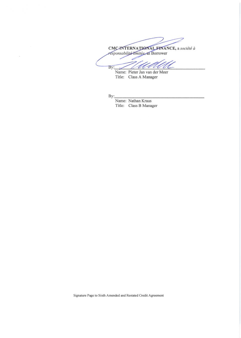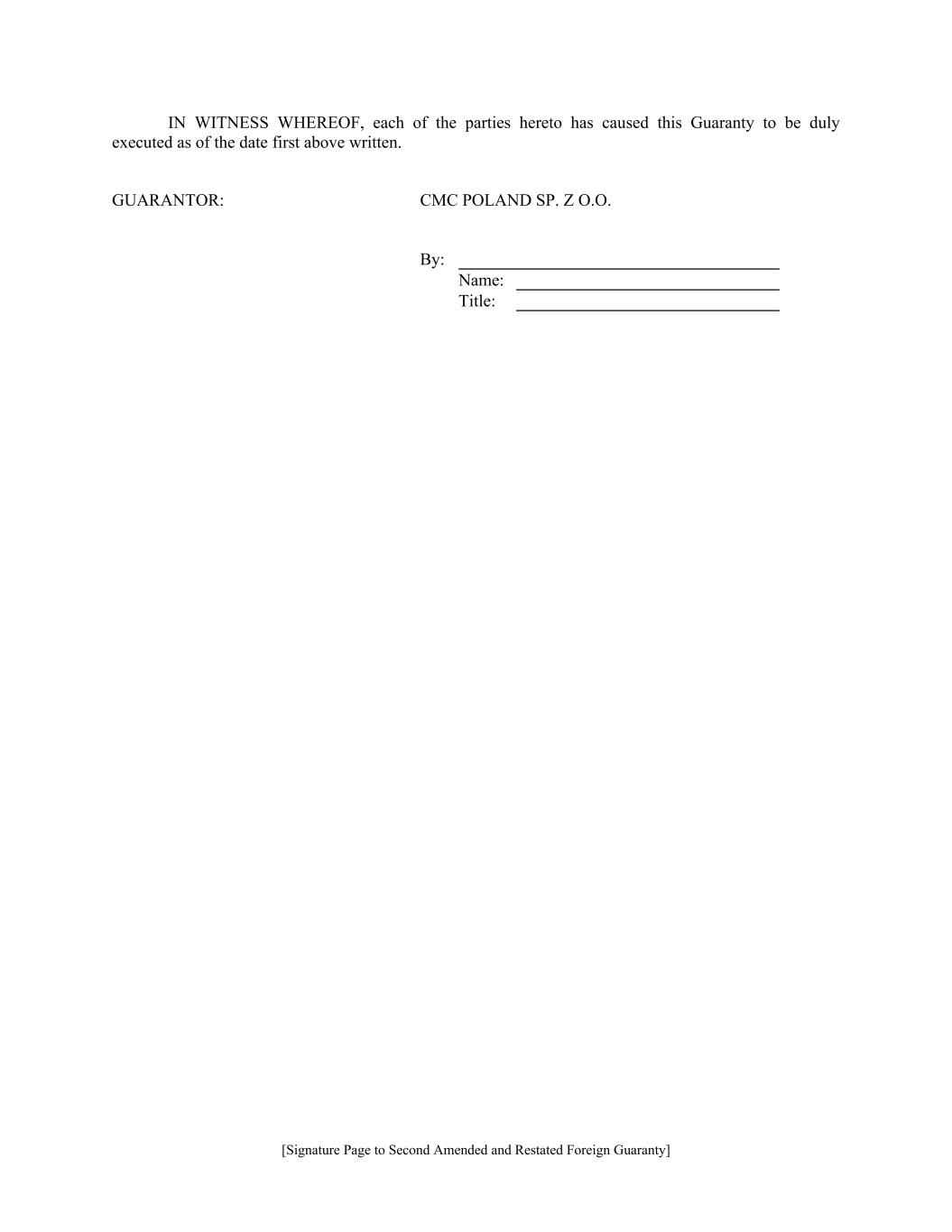 [Signature Page to Second Amended and Restated Foreign Guaranty] IN WITNESS WHEREOF, each of the parties hereto has caused this Guaranty to be duly executed as of the date first above written. GUARANTOR: CMC POLAND SP. Z O.O. By: Name: Title: