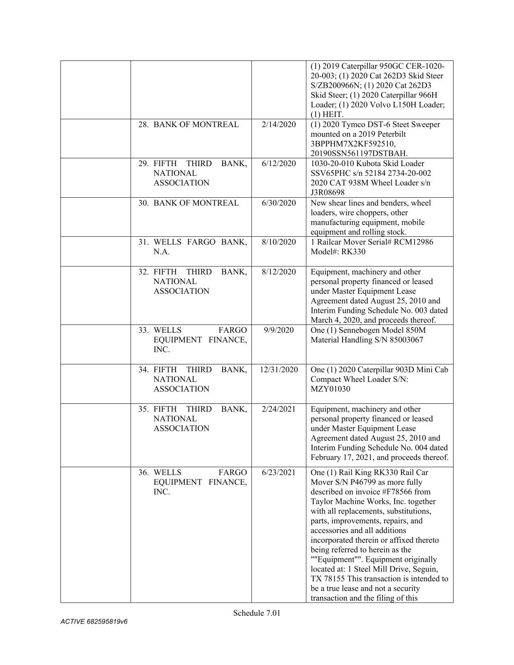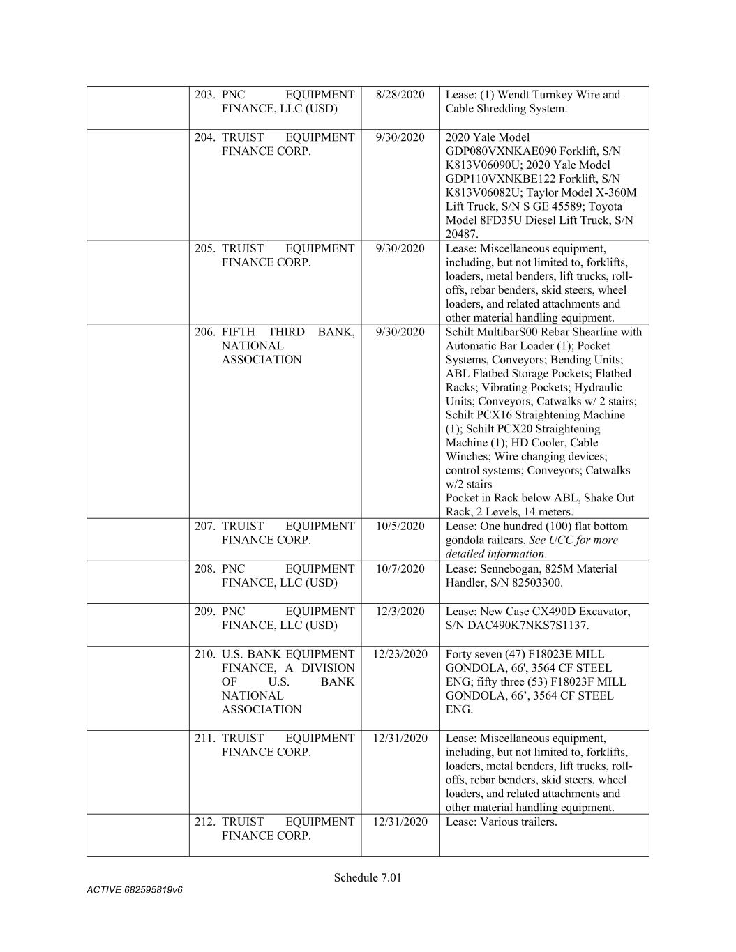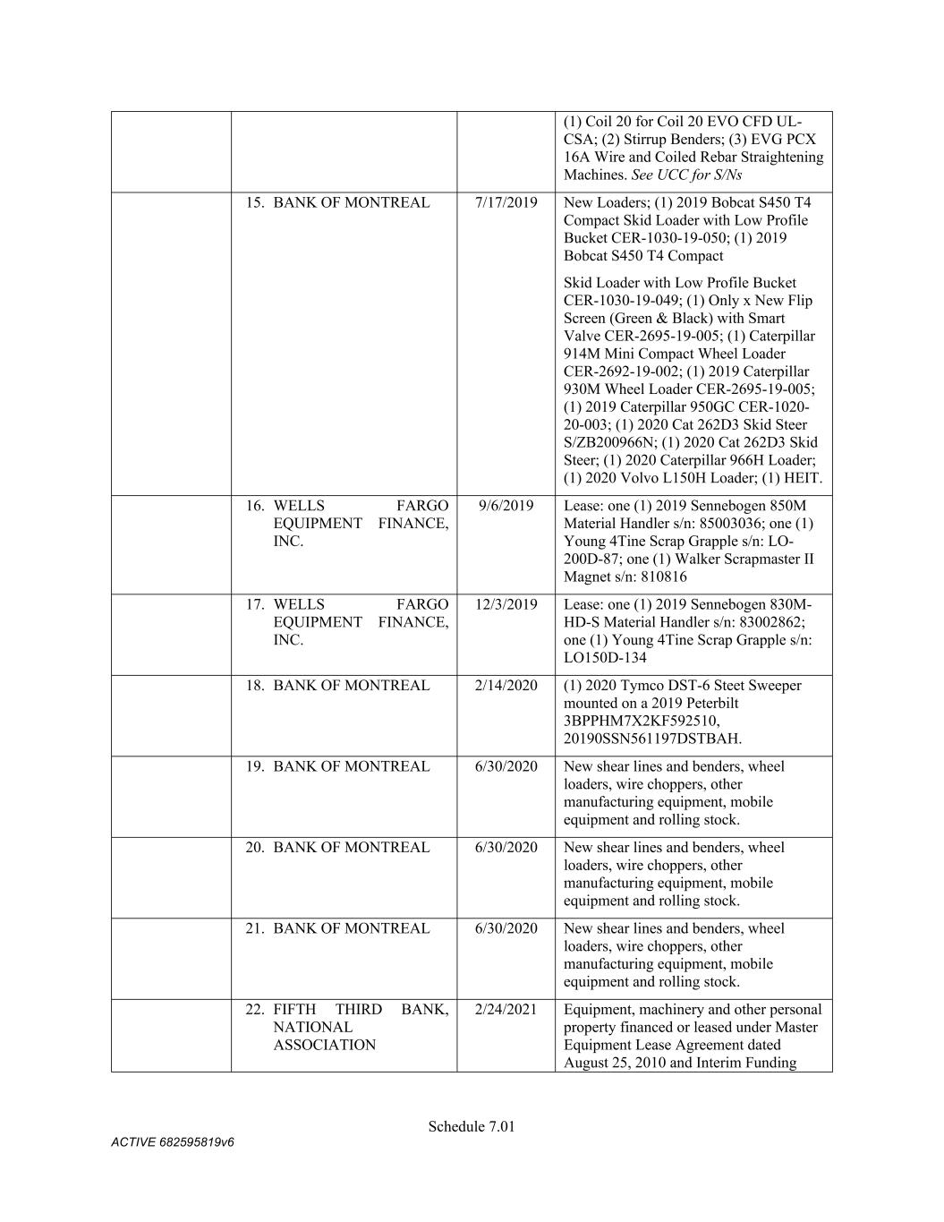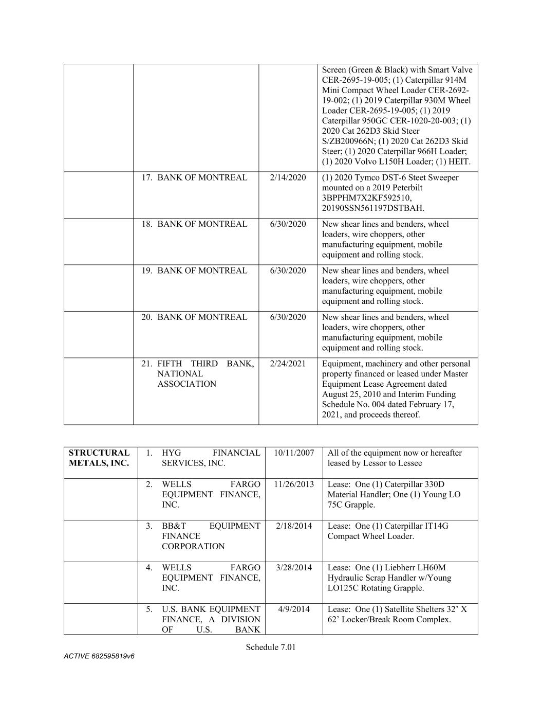 Schedule 3(f) Name CMC Recycling - American Name Registration 9/30/2025 n/a TX CMC Recycling U Pull 'N Save Fictious Name 12/31/2022 n/a FL CMC Recycling Assumed Name 9/19/2020 n/a TN CMC Recycling Fictious Name 12/31/2025 n/a FL CMC Recycling Fictious Name 4/15/2021 n/a MO CMC Recycling Name Registration 10/1/2025 n/a TX CMC Recycling Trade Name -- n/a LA CMC Recycling Assumed Name -- n/a AR CMC Recycling Trade Name -- n/a OK CMC Recycling -- n/a WV   C M C Steel Fabricators, Inc. Name Name Type Effective Date End Date Discontinuance Date Jurisdiction C M C Steel Fabricators, Inc. True Name -- -- n/a n/a CMC Steel Arizona - n/a AZ (Maricopa) CMC Steel Arkansas -- n/a AR CMC Steel Nashville Assumed Name 11/8/2023 n/a TN CMC Recycling -- n/a NC (Alamance) CMC Rebar West 1/13/2022 n/a CO CMC Rebar West UT SMI STEEL FABRICATORS Assumed Name 9/1/1989 -- 9/30/2000 OK SMI STEEL FABRICATORS Assumed Name 9/26/1989 -- 9/30/2000 MI SMI STEEL FABRICATORS Assumed Name 5/7/1990 -- 9/30/2000 LA SMI STEEL FABRICATORS Assumed Name 9/29/1989 -- 9/30/2000 AR SMI STEEL FABRICATORS Assumed Name 9/1/1989 -- 9/30/2000 AZ SOUTHERN POST COMPANY Assumed Name 7/16/1985 -- 9/30/2000 AR SOUTHERN POST COMPANY Assumed Name 7/16/1985 -- 9/30/2000 AR SOUTHERN POST COMPANY Assumed Name 12/8/2025 TX (Travis) SOUTHERN POST COMPANY Assumed Name -- 9/30/2000 WA SMI Steel-Arkansas Assumed Name 12/2/1985 -- 9/30/2000 AR SAFETY DETENTION SYSTEMS Assumed Name 3/9/1988 -- 10/28/1991 AR SMI - JOIST COMPANY Assumed Name 1/26/1990 -- 9/30/2000 AR CAPITOL STEEL, INC. Assumed Name 3/18/1988 -- 9/30/2000 LA SAFETY STEEL SERVICE Assumed Name 8/7/1989 -- 9/30/2000 MA