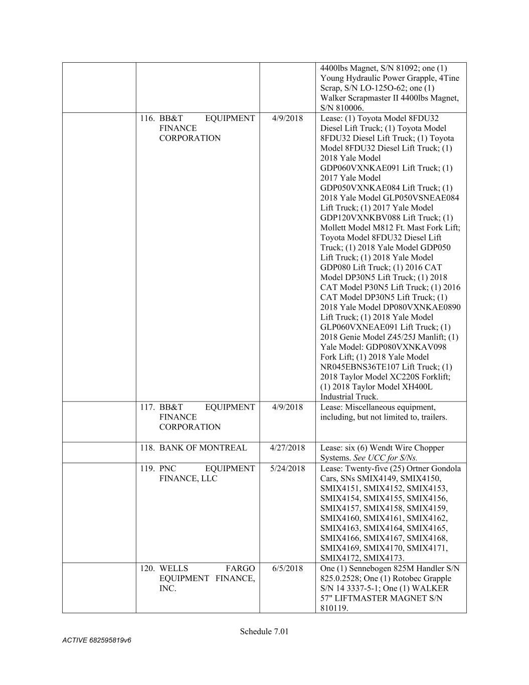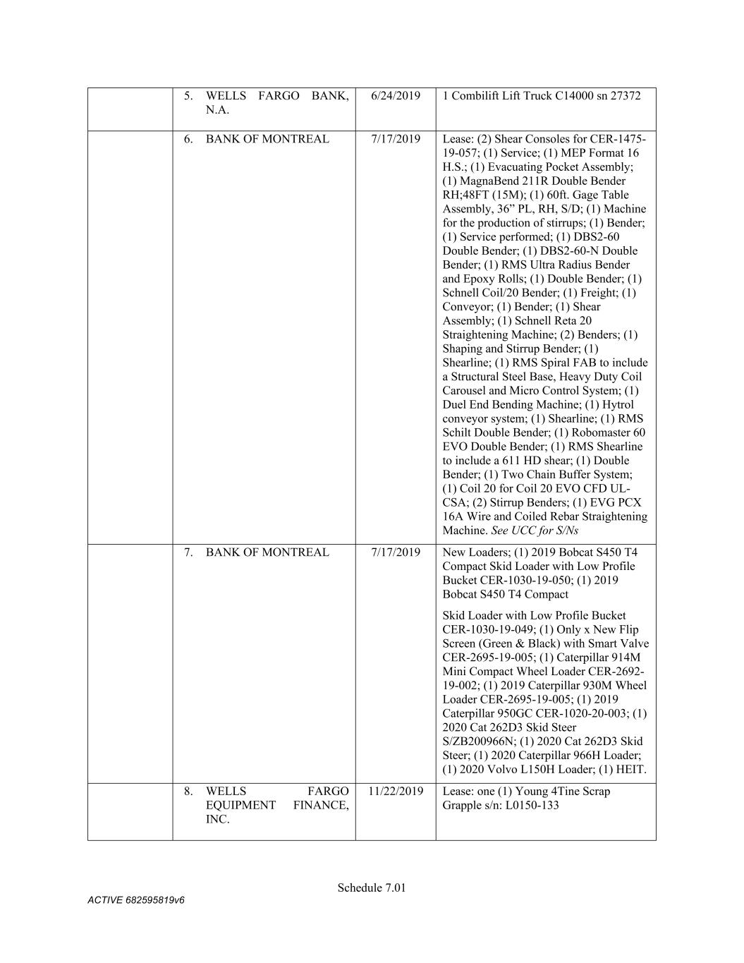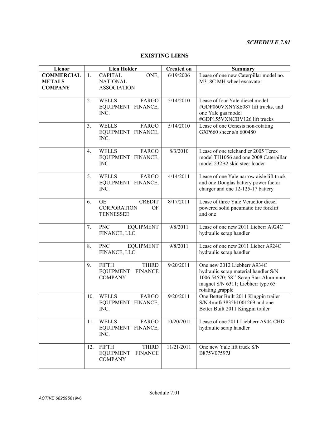 Schedule 11.01 ACTIVE 682595819v6 SCHEDULE 11.02 Administrative Agent’s Office; Certain Addresses for Notices Company: Commercial Metals Company 6565 North MacArthur Blvd., Suite 800 Irving, Texas 75039 Attn: Matthew McClellan Phone: 972-308-4724 Email: matthew.mcclellan@cmc.com Fax Number: 214-689-5886 Website Address: www.cmc.com With a Copy to: Commercial Metals Company 6565 North MacArthur Blvd., Suite 800 Irving, Texas 75039 Attn: Office of the General Counsel Fax Number: 214-689-5886 Commercial Metals Company 6565 North MacArthur Blvd., Suite 800 Irving, Texas 75039 Attn: Matthew McClellan; Matthew Whaley Email: Matthew.McClellan@cmc.com; Matthew.Whaley@cmc.com Fax Number: 214-689-5886 Administrative Agent: For payments and Requests for Credit Extensions Bank of America, N.A. 2380 Performance Drive TX2-984-03-23 Richardson, TX 75082 Attention: Gita Pandey Telephone: 1.214.209.2984 Fax: 1.214.290.8350 Electronic Mail: gita.pandey@bofa.com Other Notices for Administrative Agent Bank of America, N.A. Agency Management Gateway Village – 900 Building 900 W Trade Street Mail Code: NC1-026-06-03 Charlotte, NC 28255-0001 Attention: Michael Nicholson Telephone: 1-980-387-2469 Facsimile: 1-704-625-4275 Electronic Mail: michael.r.nicholson@bofa.com L/C Issuers: Bank of America Trade Operations Mail Code: PA6-580-02-30 1 Fleet Way Scranton, PA 18507 Phone: (570) 496-9619 Fax: 800-755-8740 Email: tradeclientserviceteamus@bofa.com Citibank, N.A. CCB Trade Servicing 1 RXR Plaza Uniondale, NY 11556 Attention: Fidelis Ines Fax No: (877) 612-3960 Swing Line Lender: Bank of America, N.A. 2380 Performance Drive TX2-984-03-23 Richardson, TX 75082 Attention: Gity Pandey Tel: 469-201-8837 Email: gita.pandey@bofa.com Facsimile: 214-290-9412 Account No.: 1366072250600 Account Name: Wire Clearing Acct for Syn-Loans LIQ Ref: Commercial Metal Corporation ABA# 026009593