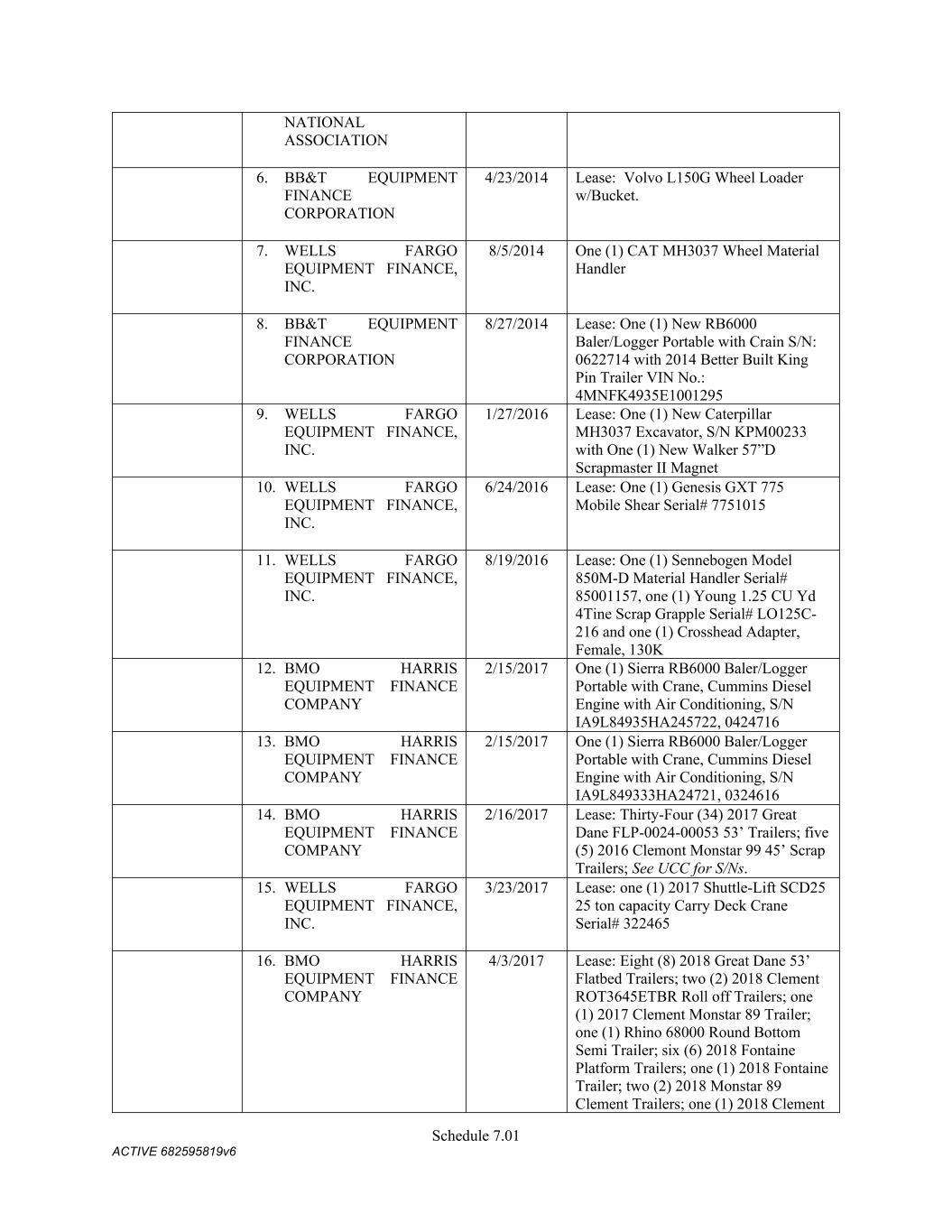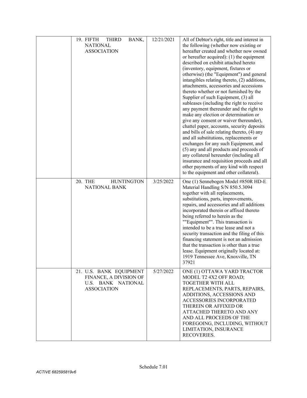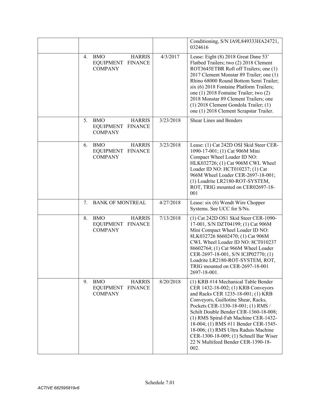 4879-4687-7238 v.4 Schedule 3(d) 3647 Hollywood Ave. Shreveport LA Owned 3310 E. Napoleon Sulphur LA Owned 717 E 12th St Joplin MO Owned 6790 Yankee Ridge Rd Polo MO Owned 634 E. Phelps Springfield MO Owned 18 Lavell Ladner Road Lumberton MS Owned 209 E Canal St Picayune MS Leased 2600 Park Road Extension Burlington NC Owned 419 Atando Ave Charlotte NC Owned 2528 N. Chester Street Gastonia NC Owned 2300 First Street NW Albuquerque NM Owned 4485 Colton Ave Las Vegas NV Owned 1804 N 166th East Ave Tulsa OK Owned 5460 S. Garnett Road Tulsa OK Leased 2641 Carnegie Rd York PA Leased 428 N Gossett St Anderson SC Owned 310 New State Rd. Cayce SC Owned 850 Taylor St Cayce SC Owned 2105 S. Beltline Columbia SC Owned 1148 Shop Rd. Columbia SC Owned 5308 Liberty Chapel Rd. Florence SC Owned 661 Neely Wingard Rd Gilbert SC Owned 2308 Two Notch Road Lexington SC Owned 2061 Nazareth Church Rd Spartanburg SC Owned 7515 Asheville Hwy Spartanburg SC Leased 557 Old Spartanburg Hwy Wellford SC Owned 2000 Washington Street Chattanooga TN Owned 624 Terminal Rd Chattanooga TN Owned 852 Visco Dr. Nashville TN Owned 1704 Howard Lane Austin TX Owned 4123 Todd Ln Austin TX Owned 710 Industrial Blvd. Austin TX Owned 5250 COLLEGE ST Beaumont TX Owned 15019 IH 35 Buda TX Owned 513 Moffet Rd Clute TX Owned 10650 State Hwy 30 College Station TX Owned 2309 N. Frazier Conroe TX Owned 301 45th St. Corpus Christi TX Owned 6802 Safety Steel Dr. Corpus Christi TX Owned 1729 N. Westmorland Dallas TX Owned 2215 S. Good-Latimer Dallas TX Owned