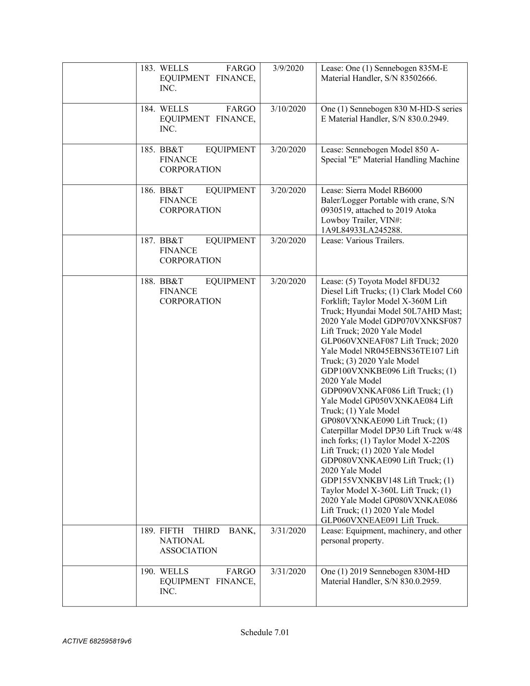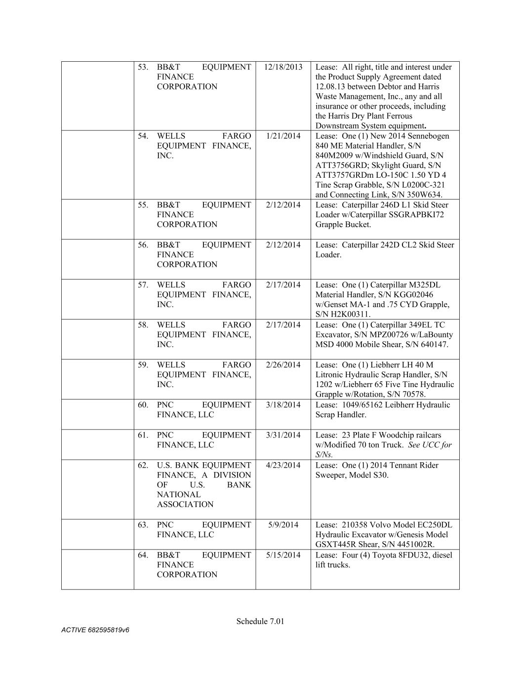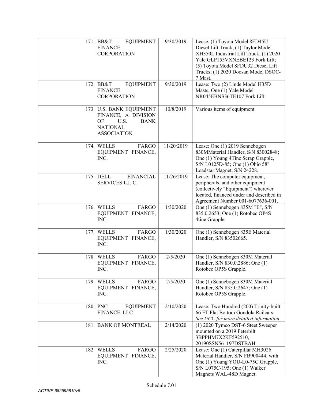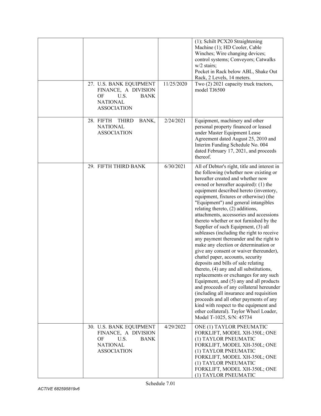 4879-4687-7238 v.4 Schedule 3(d) 3647 Hollywood Ave. Shreveport LA Owned 3310 E. Napoleon Sulphur LA Owned 717 E 12th St Joplin MO Owned 6790 Yankee Ridge Rd Polo MO Owned 634 E. Phelps Springfield MO Owned 18 Lavell Ladner Road Lumberton MS Owned 209 E Canal St Picayune MS Leased 2600 Park Road Extension Burlington NC Owned 419 Atando Ave Charlotte NC Owned 2528 N. Chester Street Gastonia NC Owned 2300 First Street NW Albuquerque NM Owned 4485 Colton Ave Las Vegas NV Owned 1804 N 166th East Ave Tulsa OK Owned 5460 S. Garnett Road Tulsa OK Leased 2641 Carnegie Rd York PA Leased 428 N Gossett St Anderson SC Owned 310 New State Rd. Cayce SC Owned 850 Taylor St Cayce SC Owned 2105 S. Beltline Columbia SC Owned 1148 Shop Rd. Columbia SC Owned 5308 Liberty Chapel Rd. Florence SC Owned 661 Neely Wingard Rd Gilbert SC Owned 2308 Two Notch Road Lexington SC Owned 2061 Nazareth Church Rd Spartanburg SC Owned 7515 Asheville Hwy Spartanburg SC Leased 557 Old Spartanburg Hwy Wellford SC Owned 2000 Washington Street Chattanooga TN Owned 624 Terminal Rd Chattanooga TN Owned 852 Visco Dr. Nashville TN Owned 1704 Howard Lane Austin TX Owned 4123 Todd Ln Austin TX Owned 710 Industrial Blvd. Austin TX Owned 5250 COLLEGE ST Beaumont TX Owned 15019 IH 35 Buda TX Owned 513 Moffet Rd Clute TX Owned 10650 State Hwy 30 College Station TX Owned 2309 N. Frazier Conroe TX Owned 301 45th St. Corpus Christi TX Owned 6802 Safety Steel Dr. Corpus Christi TX Owned 1729 N. Westmorland Dallas TX Owned 2215 S. Good-Latimer Dallas TX Owned