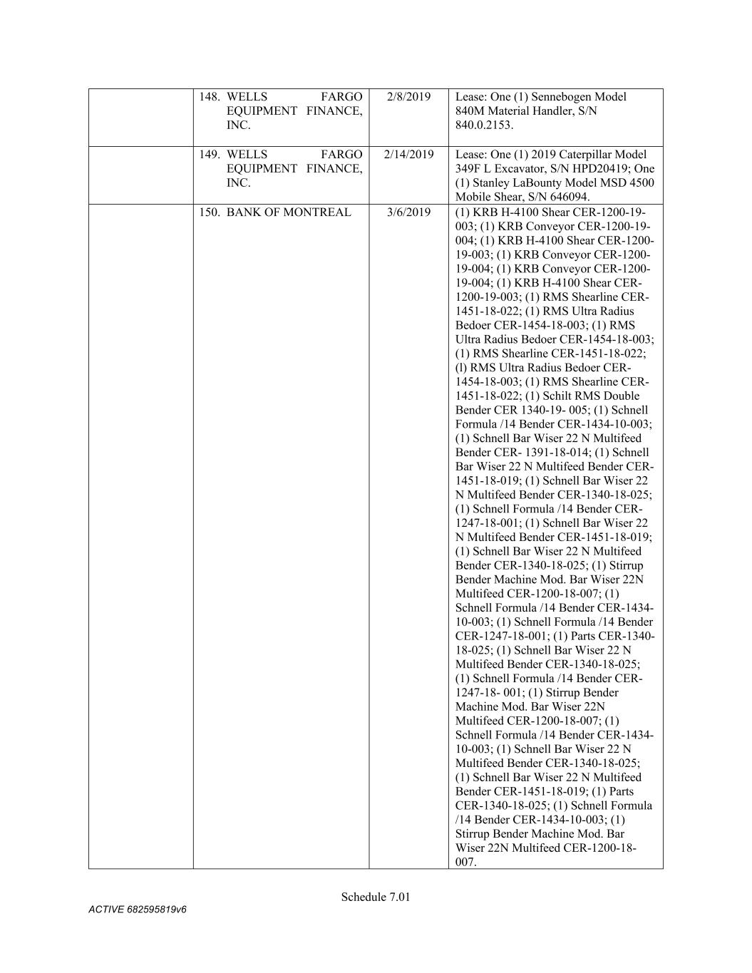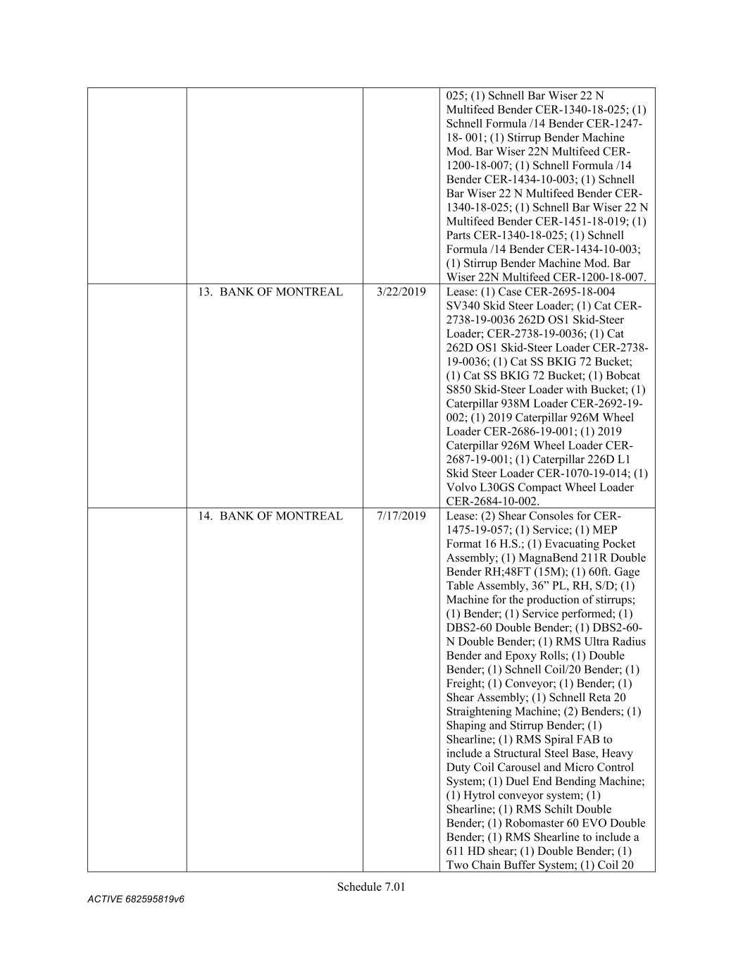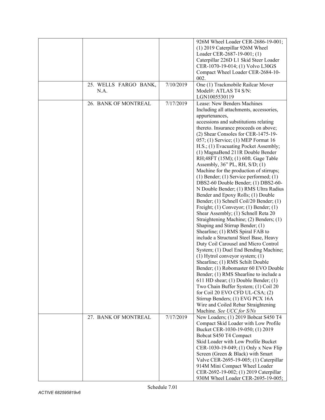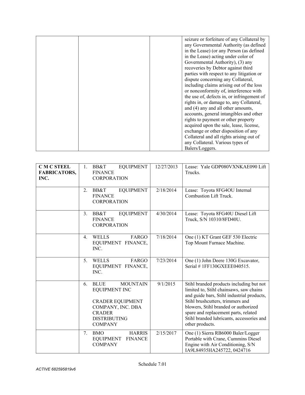 Schedule 3(f) CMC Rebar Assumed Name Perpetual GA (Chatham/ Fulton) CMC Rebar Assumed Name Perpetual MS CMC Rebar Assumed Name Perpetual NC (Gaston) CMC Rebar Assumed Name Perpetual NC (Stokes) CMC Rebar Trade Name Perpetual OK CMC Rebar Assumed Name Perpetual VA (Fredericksburg) CMC Rebar Assumed Name Perpetual n/a WA CMC Joist & Deck Assumed Name 3/29/2007 -- n/a IN CMC Rebar Assumed Name 12/27/2025 n/a HI CMC Cable Fictious Name 8/30/2024 n/a CA (San Bernardino) CMC Cable Fictious Name 3/28/2024 n/a CA (Los Angeles) CMC Cable Assumed Name -- n/a WA CMC Cable East Assumed Name 5/16/2024 n/a OH CMC Cable East Fictious Name 5/24/2024 n/a FL CMC Cable East Assumed Name 5/16/2029 n/a TN CMC Cable East Assumed Name -- n/a GA (Fulton) CMC Cable East Fictious Name -- n/a MS CMC Cable East Assumed Name -- n/a NC (Wake) CMC Cable East Assumed Name -- n/a VA (Fairfax) CMC Cable East Assumed Name -- n/a VA (Newport News) CMC Cable East Assumed Name -- n/a VA (Northampton) CMC Cable East Assumed Name -- n/a VA (Prince William) CMC Cable East Assumed Name -- n/a VA (Richmond) CMC Cable East Assumed Name -- n/a VA (Southampton) CMC Cable East Assumed Name -- n/a VA (Virginia Beach) CMC Construction Services Fictious Name 12/31/2025 n/a FL CMC Construction Services Assumed Name 8/12/2025 n/a TX (Dallas) CMC Construction Services Assumed Name 9/7/2025 n/a LA CMC Construction Services Assumed Name -- n/a AZ (Maricopa) CMC Construction Services Assumed Name -- n/a AR CMC Construction Services Assumed Name -- n/a CO CMC Construction Services Assumed Name -- ID CMC Construction Services Trade Name -- OK CMC Paving Solutions Assumed Name 5/1/2025 n/a IL