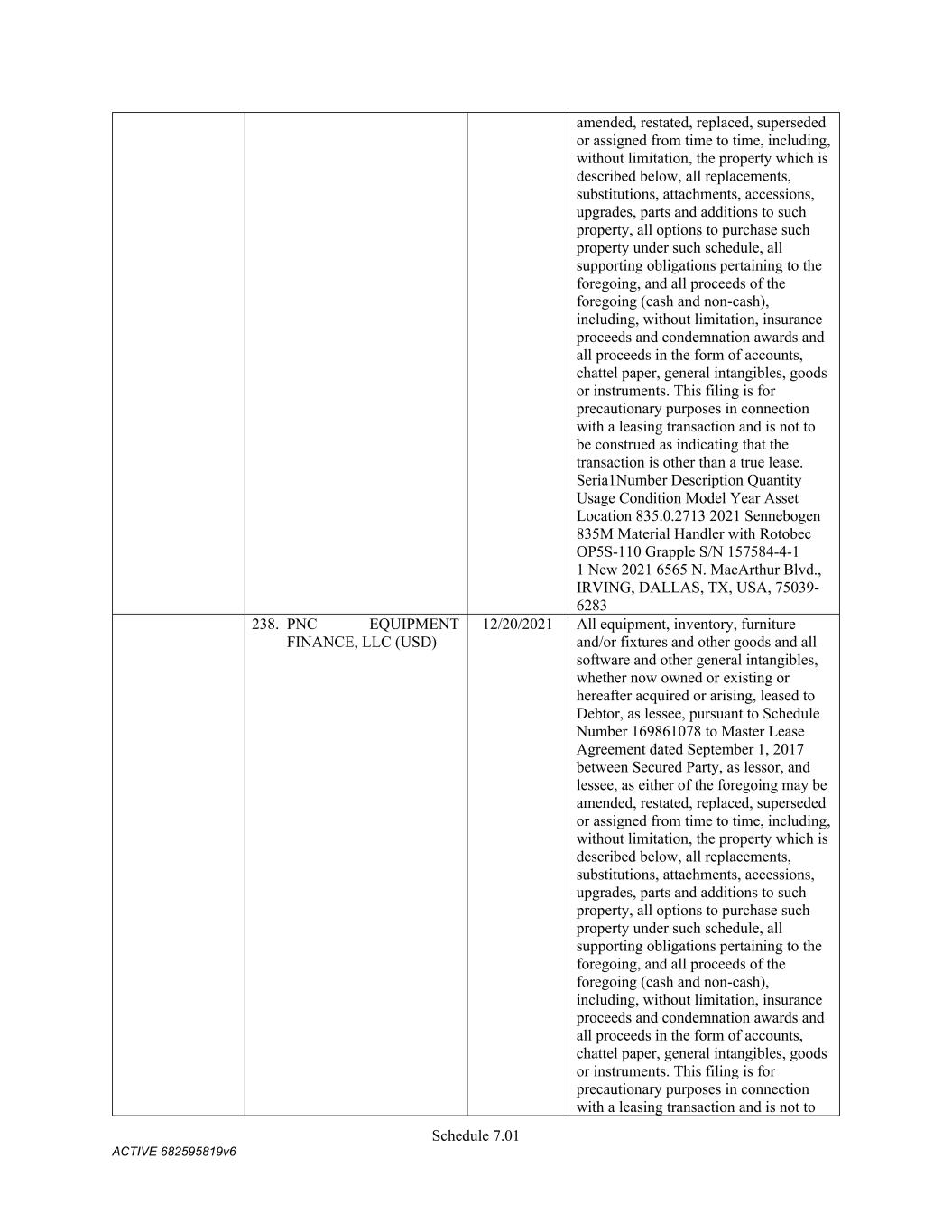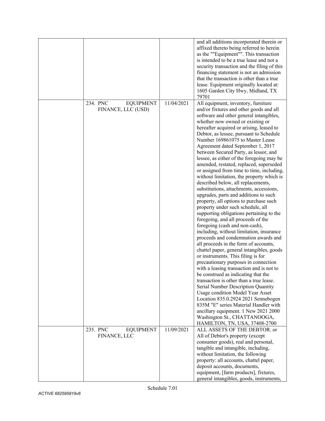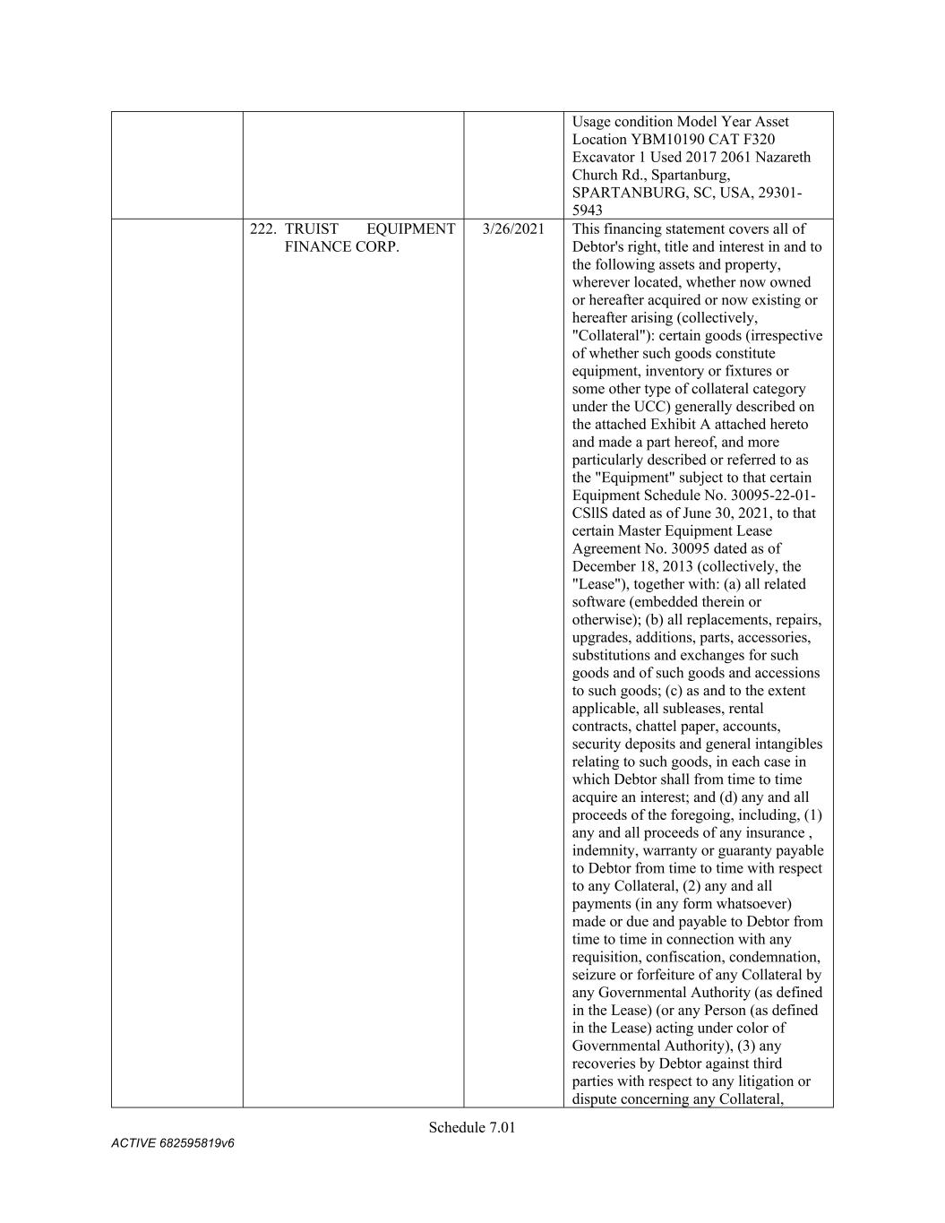 4879-4687-7238 v.4 Schedule 3(d) 2353 E. Main Street Durant Oklahoma Owned 5101 Bird Creek Ave Catoosa Oklahoma Third-Party GEOPIER FOUNDATION COMPANY, INC. Address City State Owned/Leased 10325 Ridge Creek Dr. Charlotte North Carolina Leased
