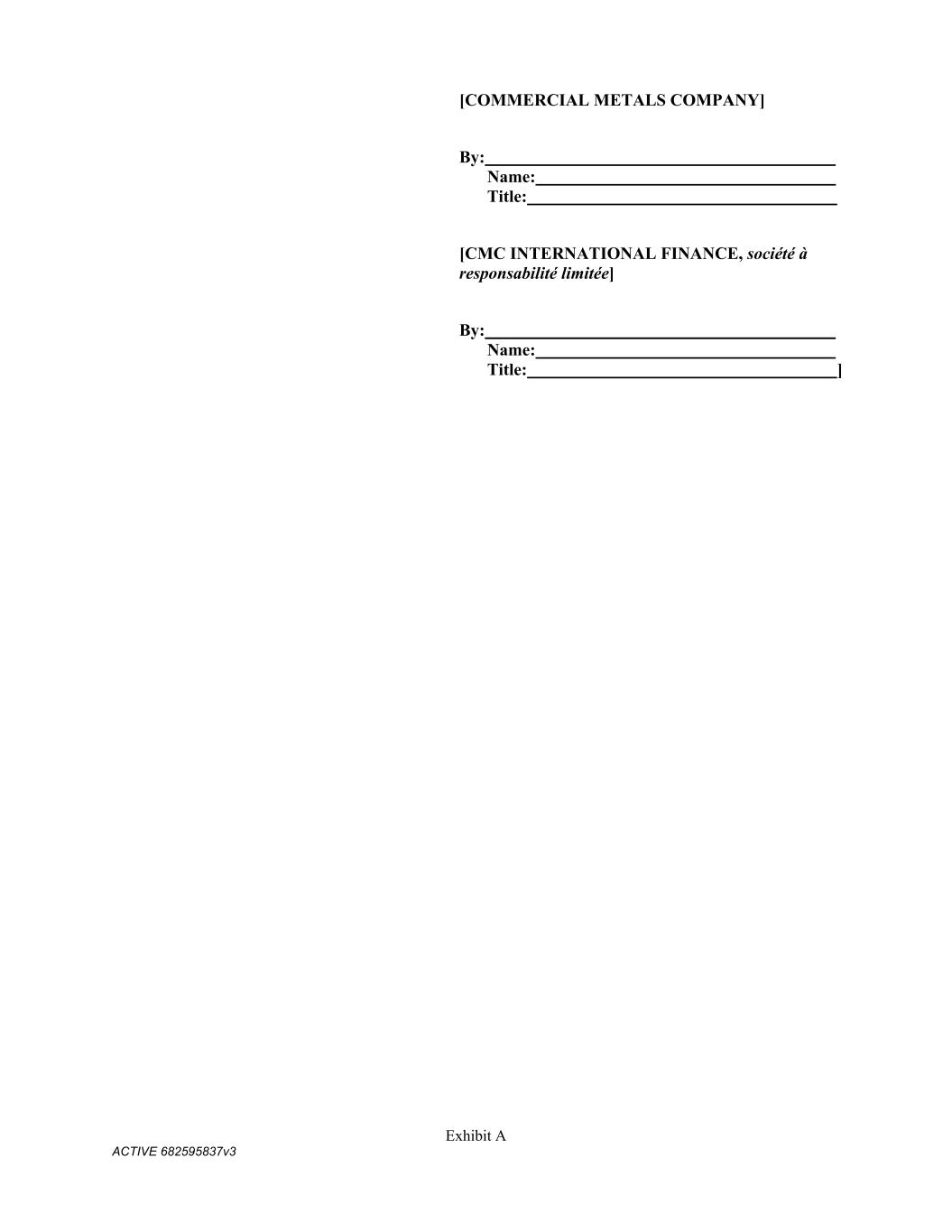 Exhibit A ACTIVE 682595837v3 [COMMERCIAL METALS COMPANY] By: Name: Title: [CMC INTERNATIONAL FINANCE, société à responsabilité limitée] By: Name: Title: ]