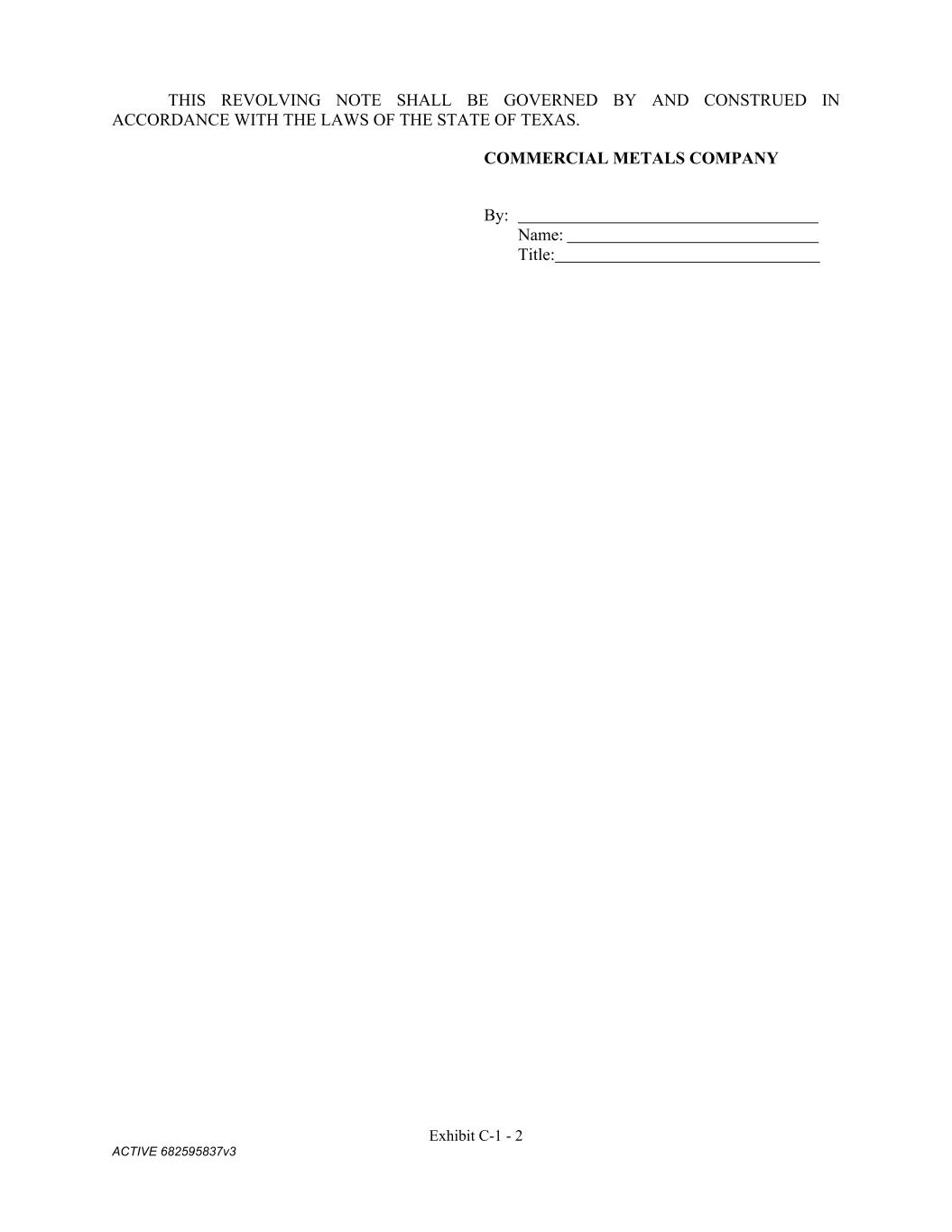 Exhibit C-1 - 2 ACTIVE 682595837v3 THIS REVOLVING NOTE SHALL BE GOVERNED BY AND CONSTRUED IN ACCORDANCE WITH THE LAWS OF THE STATE OF TEXAS. COMMERCIAL METALS COMPANY By: Name: Title: