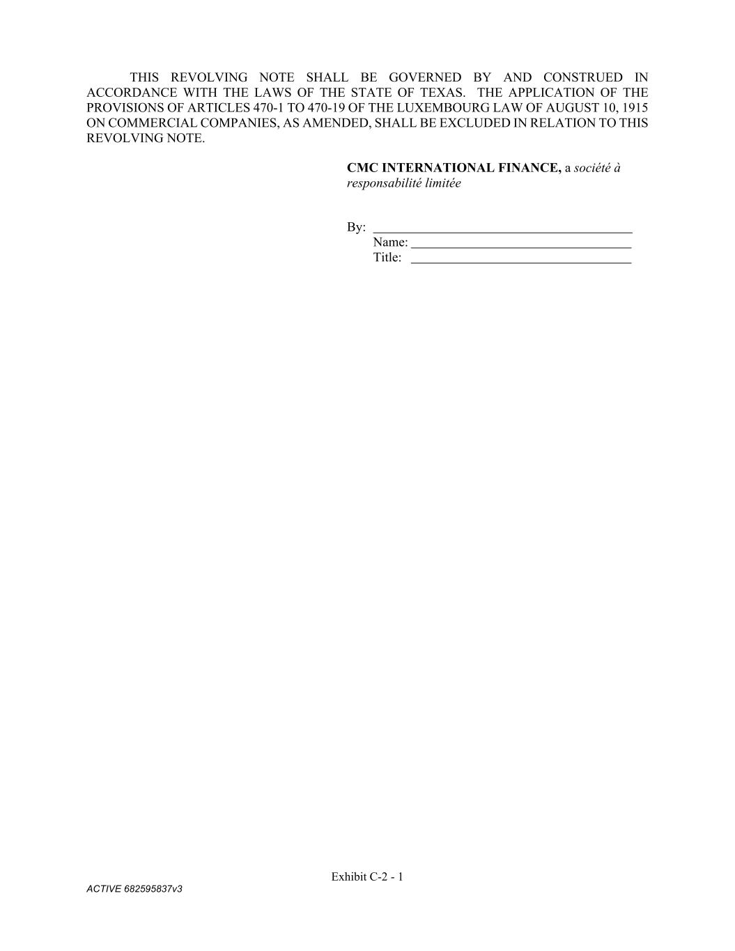 Exhibit C-2 - 1 ACTIVE 682595837v3 THIS REVOLVING NOTE SHALL BE GOVERNED BY AND CONSTRUED IN ACCORDANCE WITH THE LAWS OF THE STATE OF TEXAS. THE APPLICATION OF THE PROVISIONS OF ARTICLES 470-1 TO 470-19 OF THE LUXEMBOURG LAW OF AUGUST 10, 1915 ON COMMERCIAL COMPANIES, AS AMENDED, SHALL BE EXCLUDED IN RELATION TO THIS REVOLVING NOTE. CMC INTERNATIONAL FINANCE, a société à responsabilité limitée By: Name: Title: