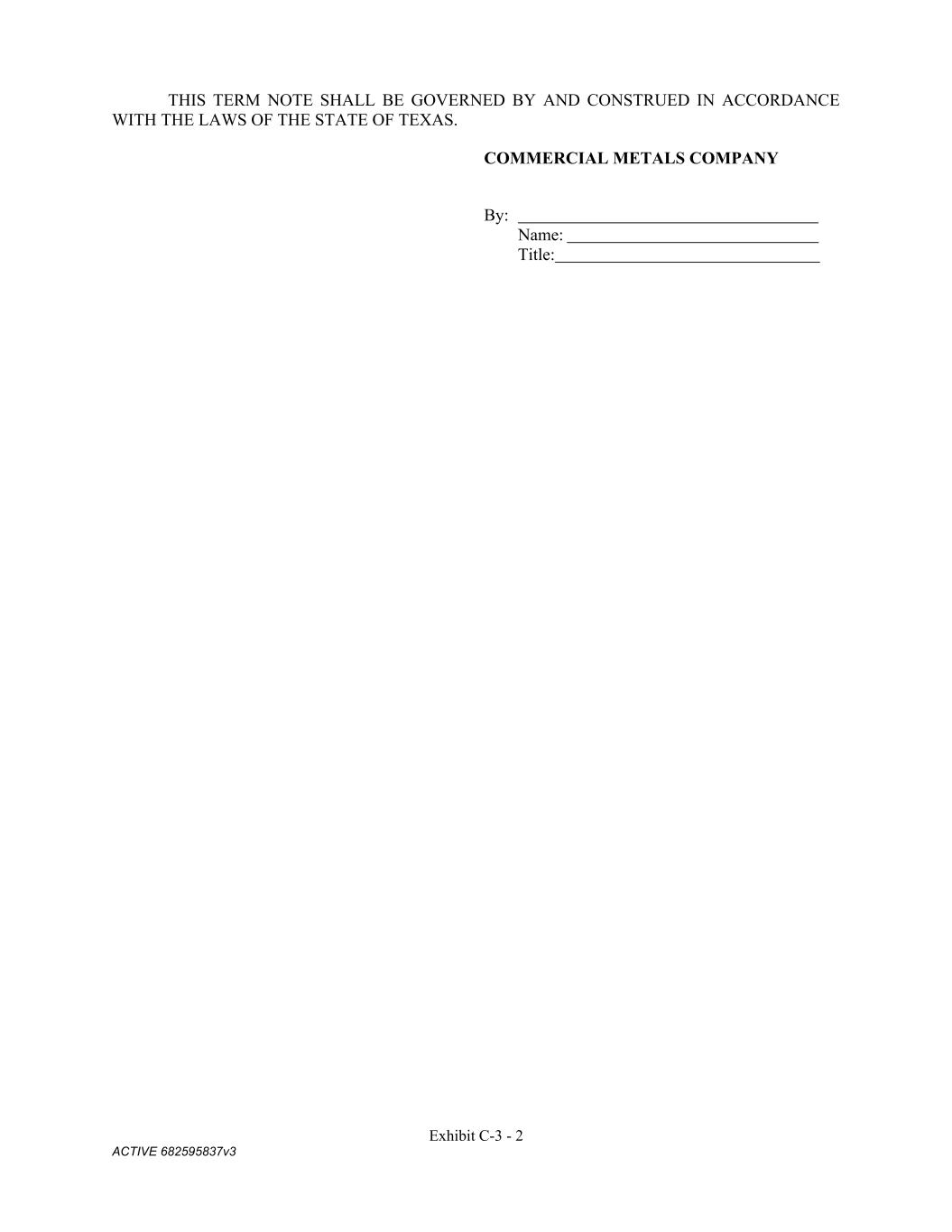 Exhibit C-3 - 2 ACTIVE 682595837v3 THIS TERM NOTE SHALL BE GOVERNED BY AND CONSTRUED IN ACCORDANCE WITH THE LAWS OF THE STATE OF TEXAS. COMMERCIAL METALS COMPANY By: Name: Title: