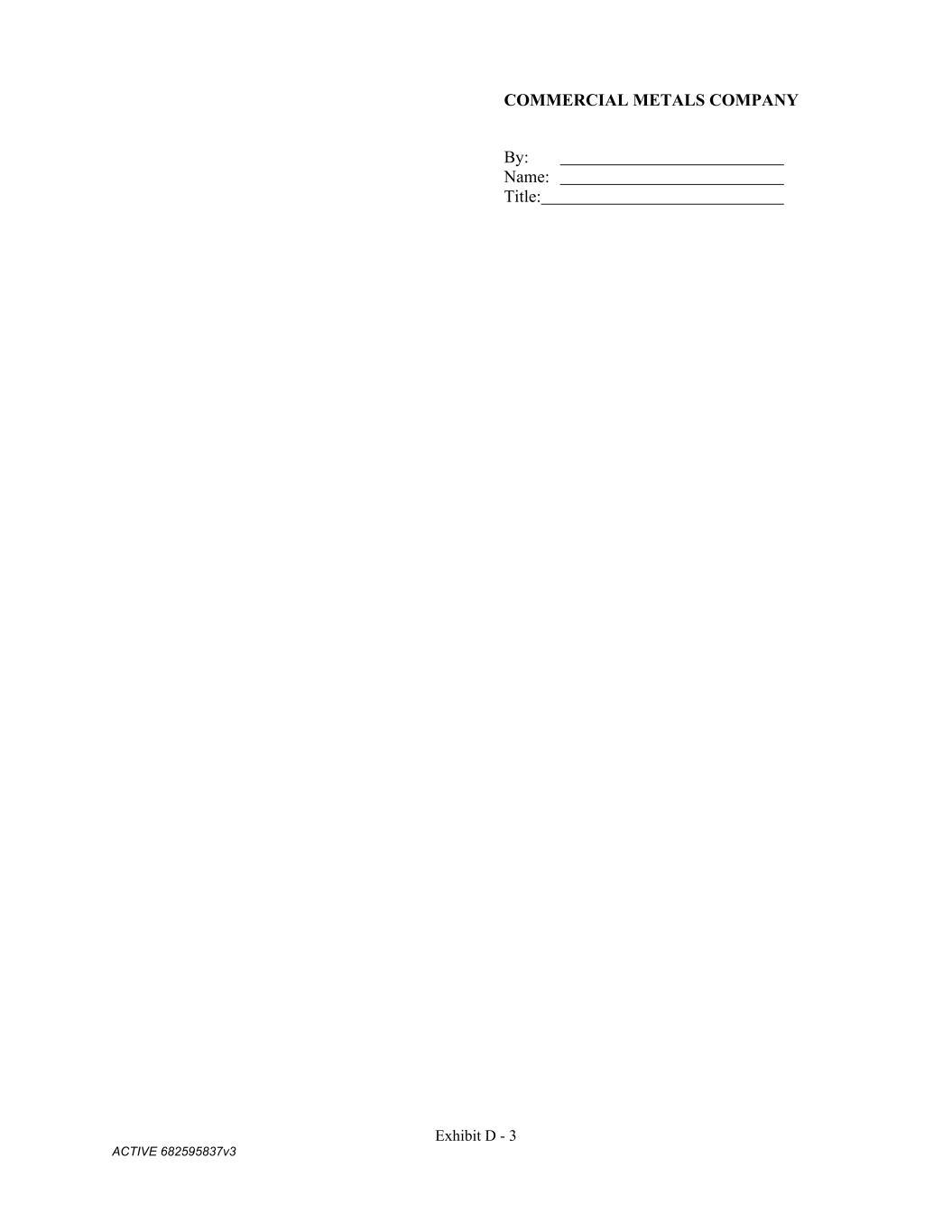 Exhibit D - 3 ACTIVE 682595837v3 COMMERCIAL METALS COMPANY By: Name: Title: