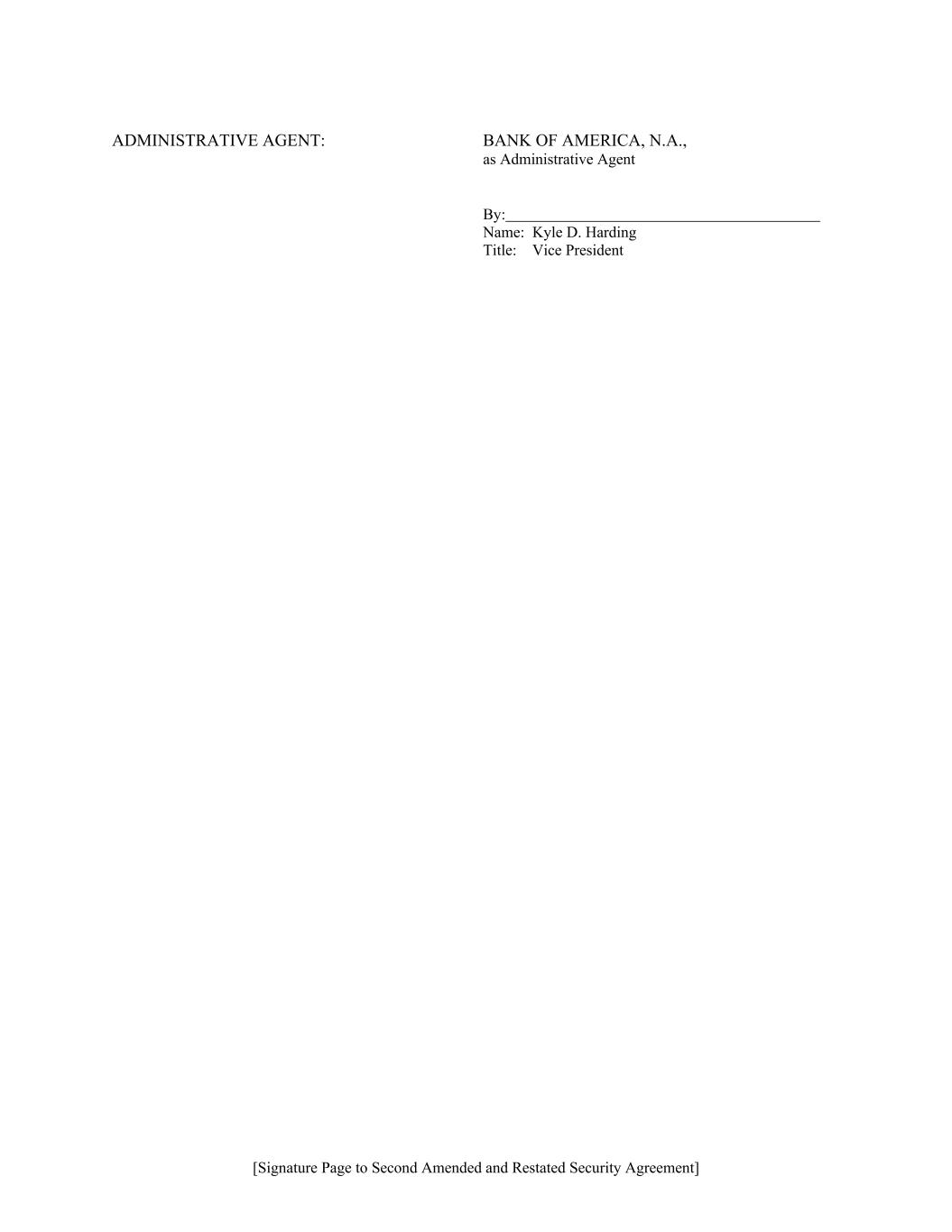 [Signature Page to Second Amended and Restated Security Agreement] ADMINISTRATIVE AGENT: BANK OF AMERICA, N.A., as Administrative Agent By: Name: Kyle D. Harding Title: Vice President