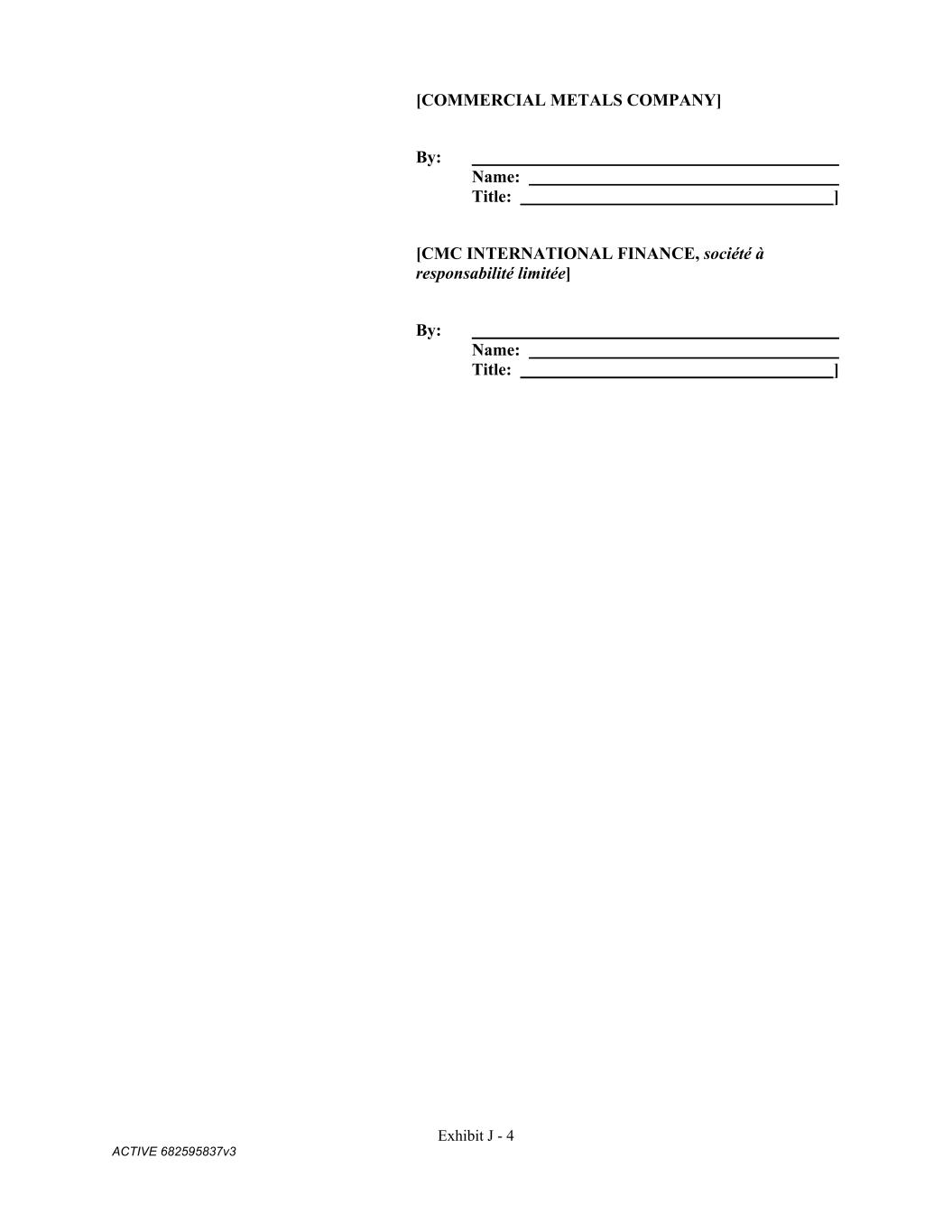 Exhibit J - 4 ACTIVE 682595837v3 [COMMERCIAL METALS COMPANY] By: Name: Title: ] [CMC INTERNATIONAL FINANCE, société à responsabilité limitée] By: Name: Title: ]