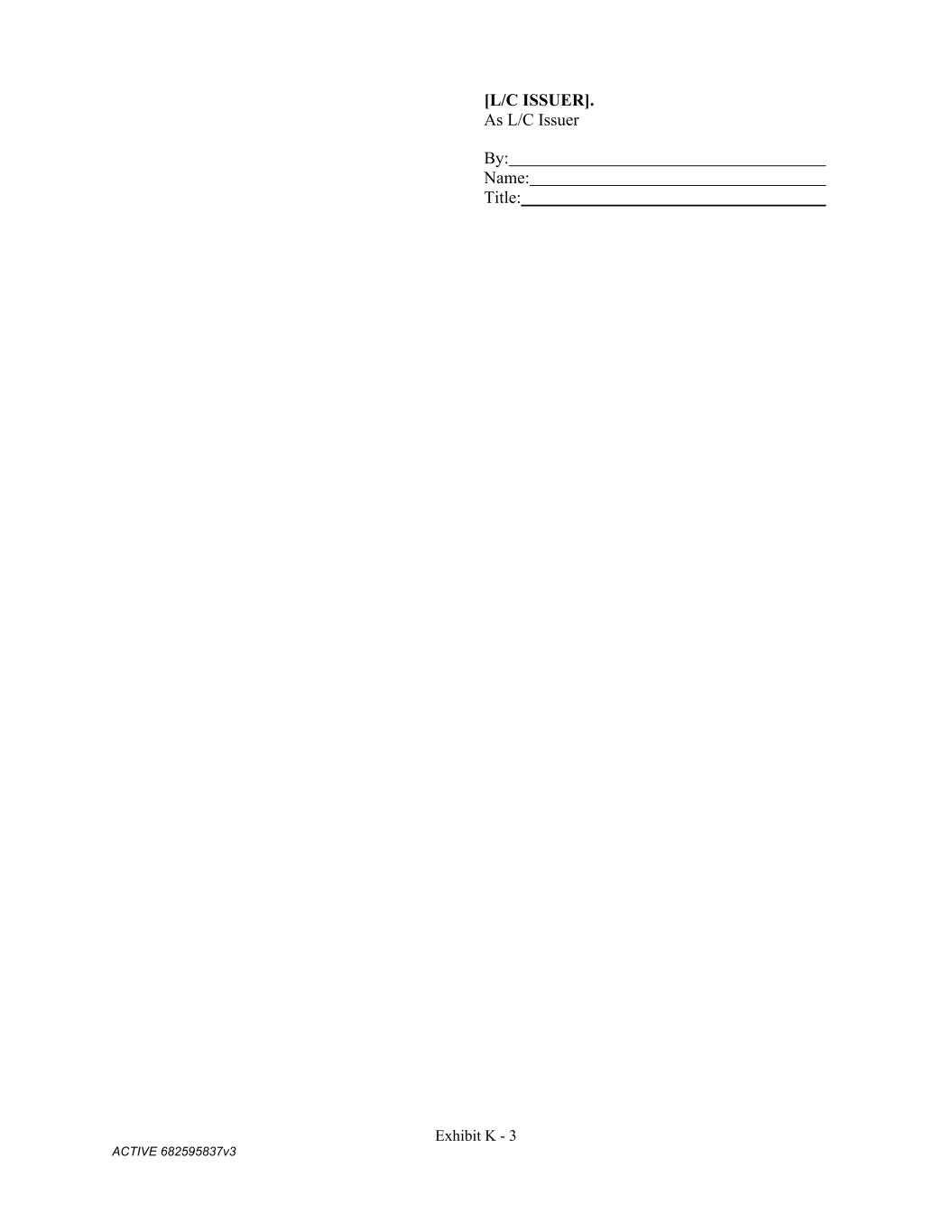 Exhibit K - 3 ACTIVE 682595837v3 [L/C ISSUER]. As L/C Issuer By: Name: Title:
