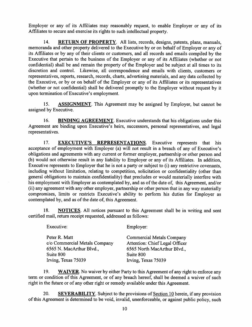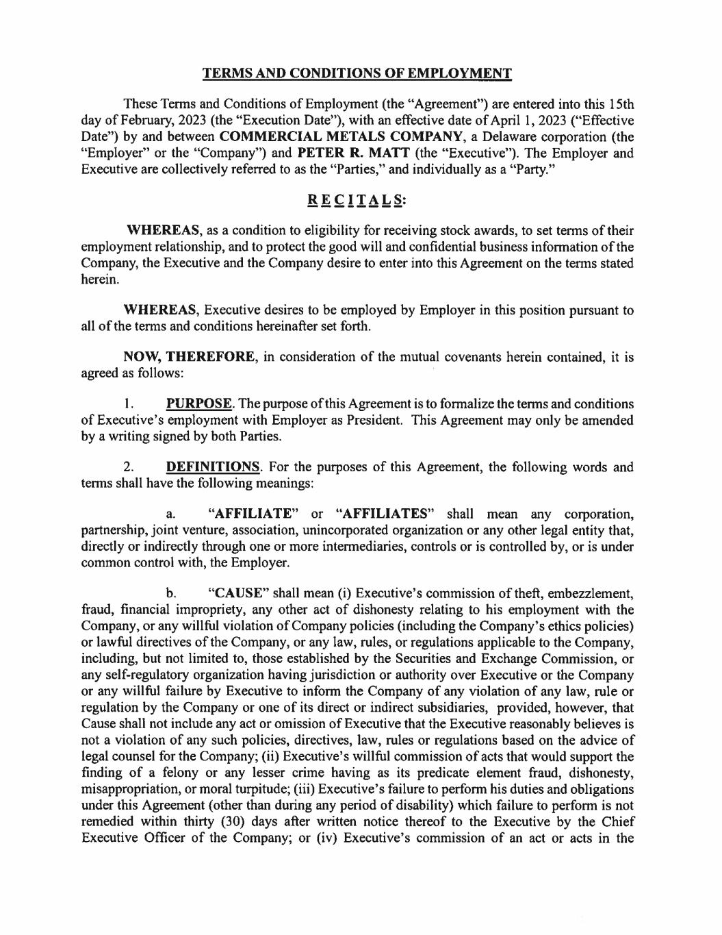 EX-10.1 2 ex-101_mattxemploymentag.htm EX-10.1 ex-101_mattxemploymentag