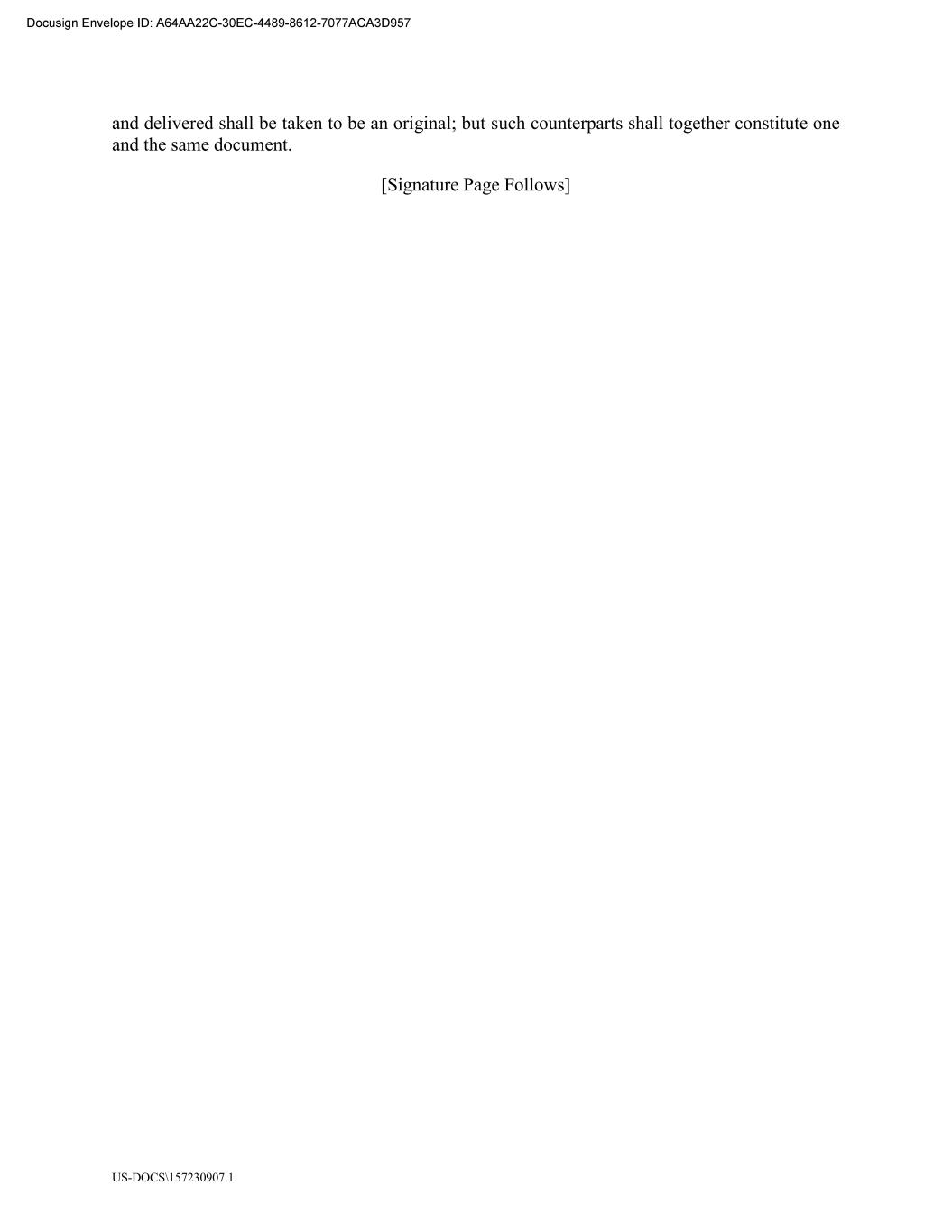 US-DOCS\157230907.1 and delivered shall be taken to be an original; but such counterparts shall together constitute one and the same document. [Signature Page Follows]