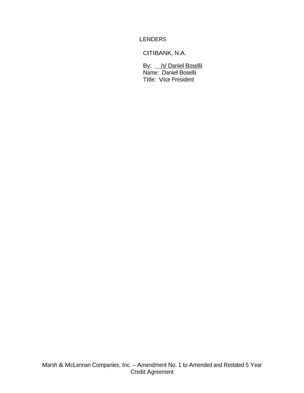 Marsh & McLennan Companies, Inc. – Amendment No. 1 to Amended and Restated 5 Year Credit Agreement LENDERS CITIBANK, N.A. By: /s/ Daniel Boselli Name: Daniel Boselli Title: Vice President