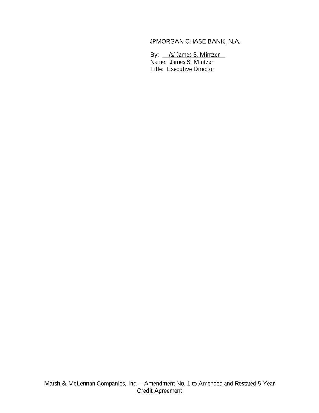 Marsh & McLennan Companies, Inc. – Amendment No. 1 to Amended and Restated 5 Year Credit Agreement JPMORGAN CHASE BANK, N.A. By: /s/ James S. Mintzer Name: James S. Mintzer Title: Executive Director
