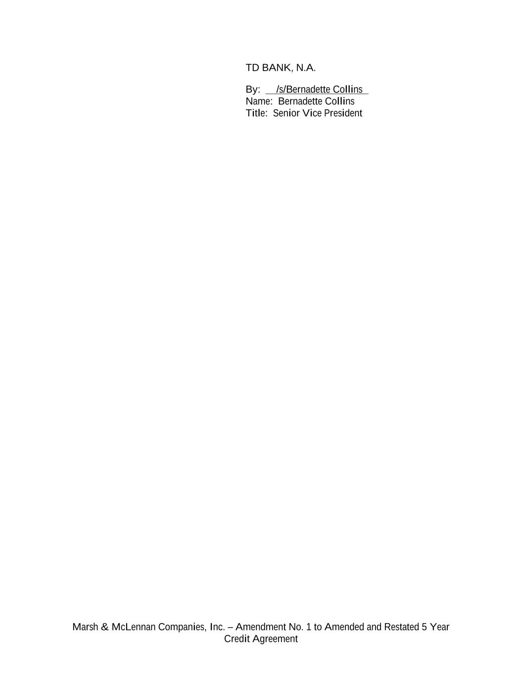 Marsh & McLennan Companies, Inc. – Amendment No. 1 to Amended and Restated 5 Year Credit Agreement TD BANK, N.A. By: /s/Bernadette Collins Name: Bernadette Collins Title: Senior Vice President