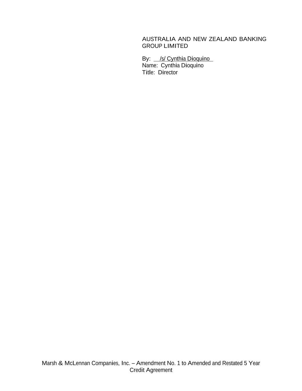Marsh & McLennan Companies, Inc. – Amendment No. 1 to Amended and Restated 5 Year Credit Agreement AUSTRALIA AND NEW ZEALAND BANKING GROUP LIMITED By: /s/ Cynthia Dioquino Name: Cynthia Dioquino Title: Director
