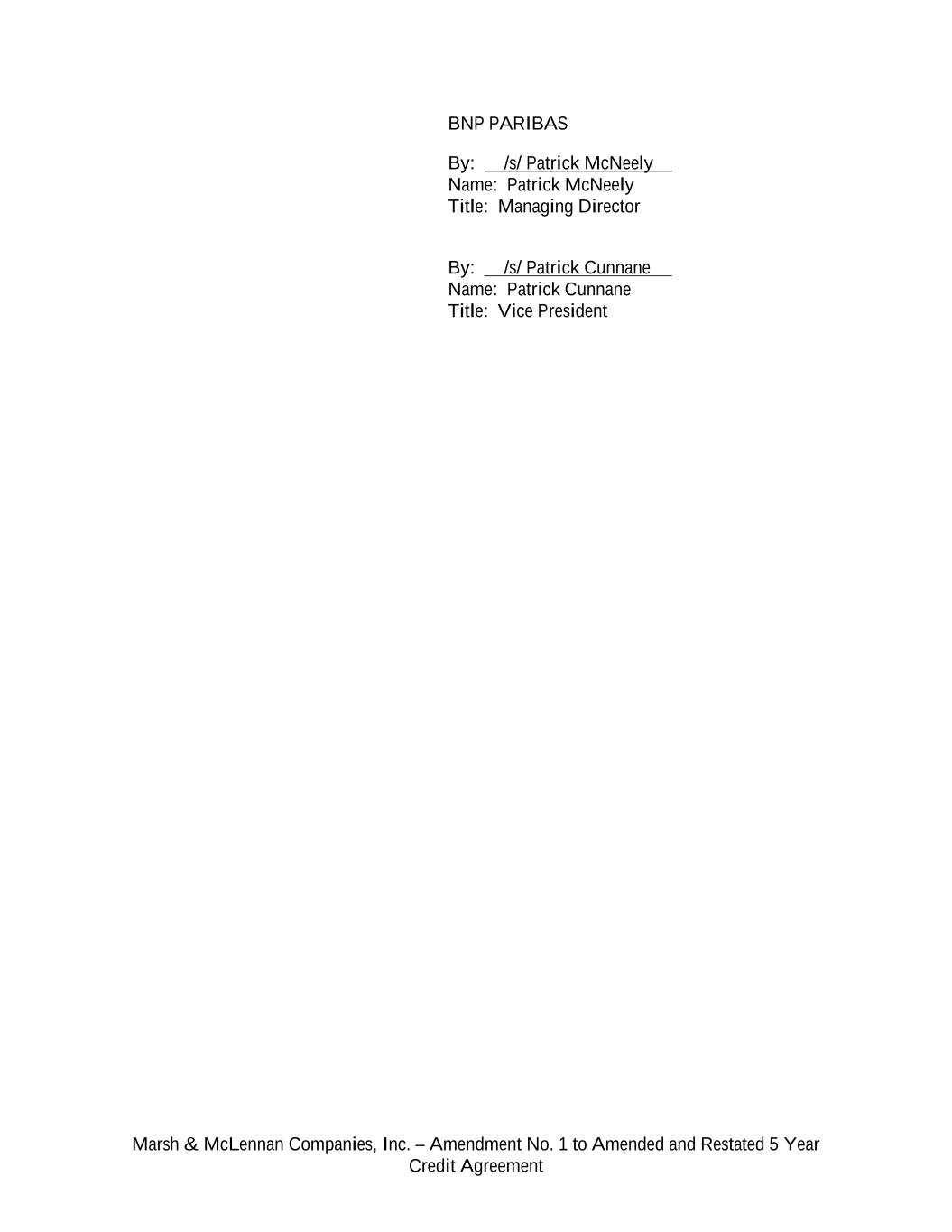 Marsh & McLennan Companies, Inc. – Amendment No. 1 to Amended and Restated 5 Year Credit Agreement BNP PARIBAS By: /s/ Patrick McNeely Name: Patrick McNeely Title: Managing Director By: /s/ Patrick Cunnane Name: Patrick Cunnane Title: Vice President