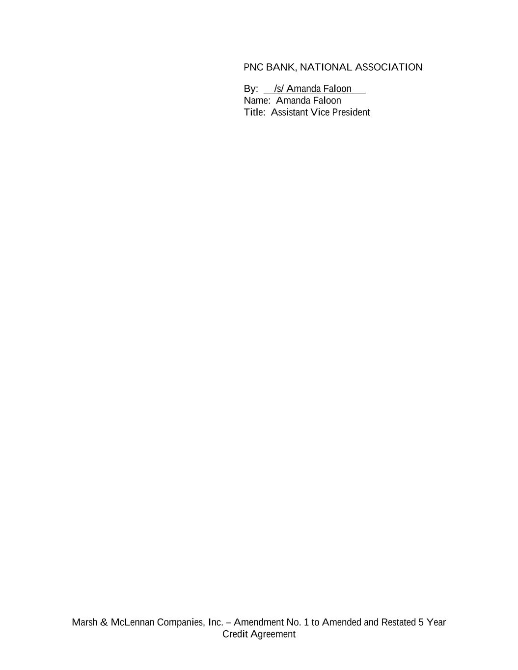 Marsh & McLennan Companies, Inc. – Amendment No. 1 to Amended and Restated 5 Year Credit Agreement PNC BANK, NATIONAL ASSOCIATION By: /s/ Amanda Faloon Name: Amanda Faloon Title: Assistant Vice President