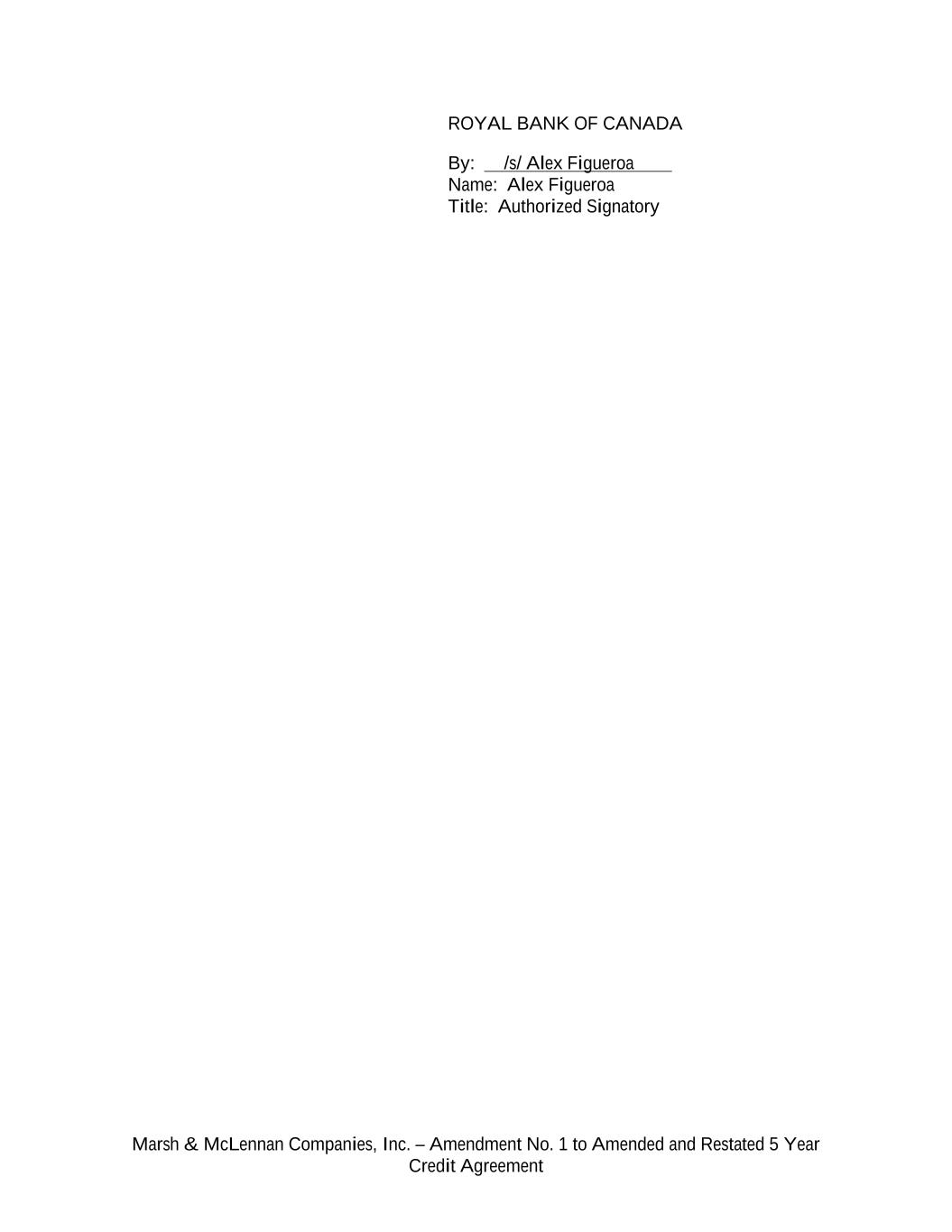 Marsh & McLennan Companies, Inc. – Amendment No. 1 to Amended and Restated 5 Year Credit Agreement ROYAL BANK OF CANADA By: /s/ Alex Figueroa Name: Alex Figueroa Title: Authorized Signatory