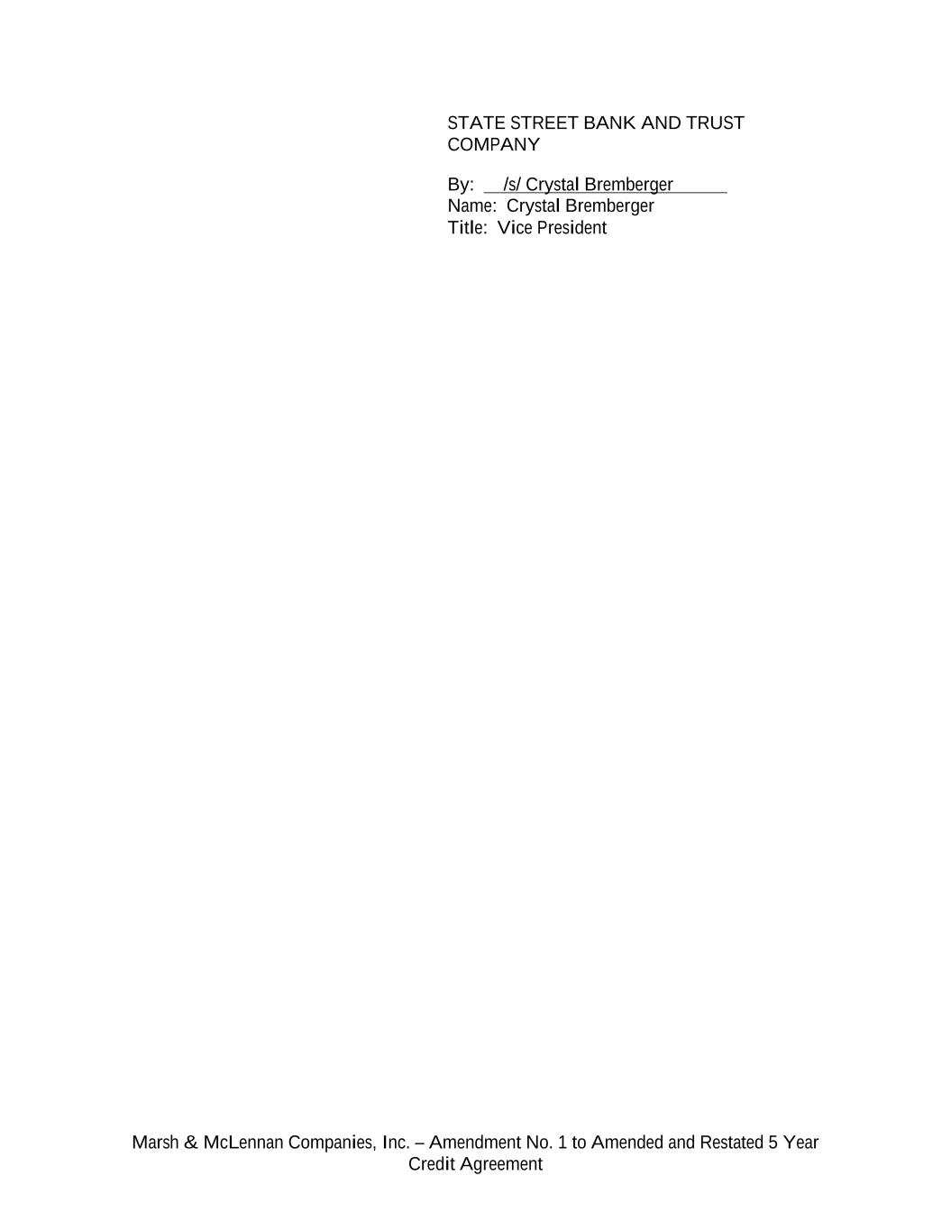 Marsh & McLennan Companies, Inc. – Amendment No. 1 to Amended and Restated 5 Year Credit Agreement STATE STREET BANK AND TRUST COMPANY By: /s/ Crystal Bremberger Name: Crystal Bremberger Title: Vice President