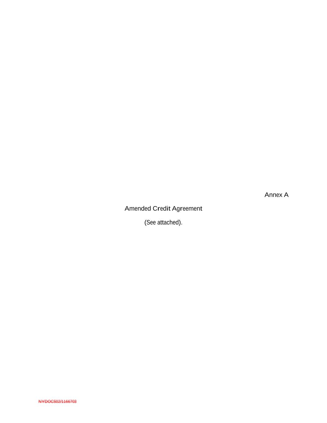 NYDOCS02/1166703 Annex A Amended Credit Agreement (See attached).