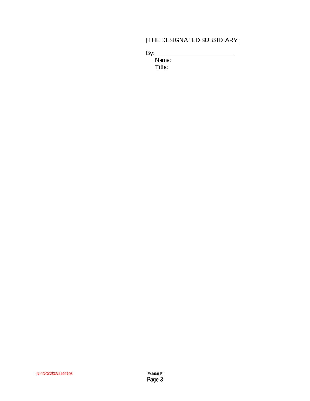 NYDOCS02/1166703 Exhibit E Page 3 [THE DESIGNATED SUBSIDIARY] By:__________________________ Name: Title: