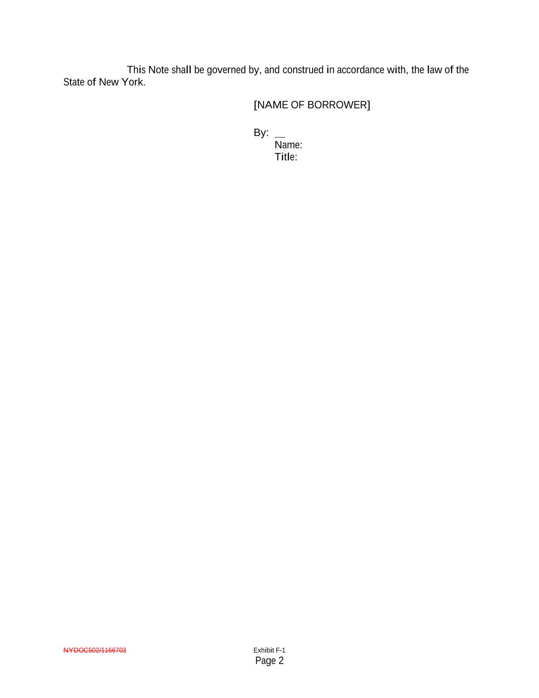 NYDOCS02/1166703 Exhibit F-1 Page 2 This Note shall be governed by, and construed in accordance with, the law of the State of New York. [NAME OF BORROWER] By: Name: Title: