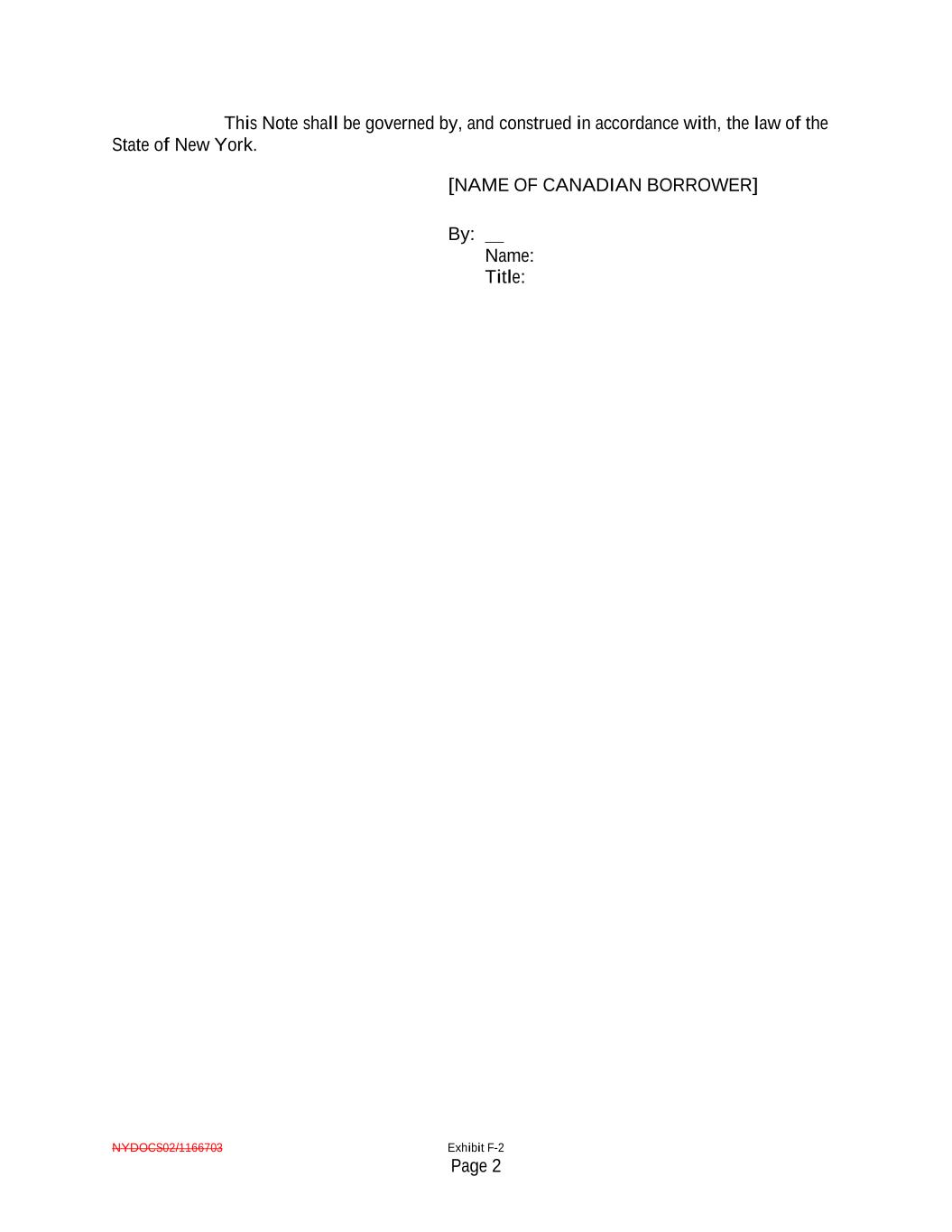 NYDOCS02/1166703 Exhibit F-2 Page 2 This Note shall be governed by, and construed in accordance with, the law of the State of New York. [NAME OF CANADIAN BORROWER] By: Name: Title: