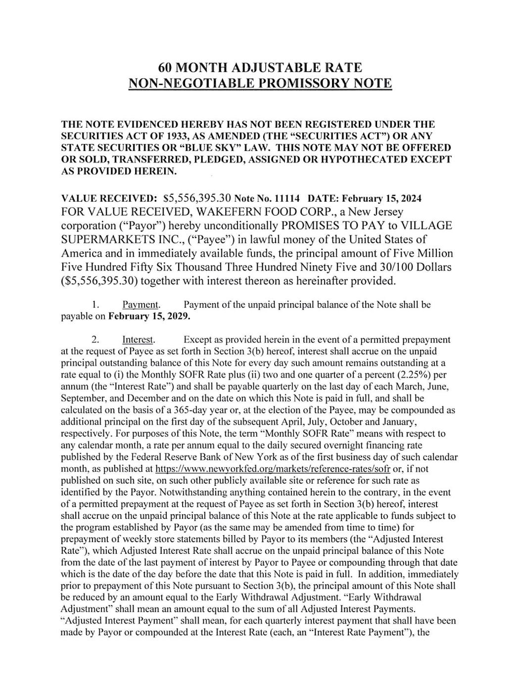 EX-10.1 2 a11114villagesupermarket.htm EX-10.1 a11114villagesupermarket