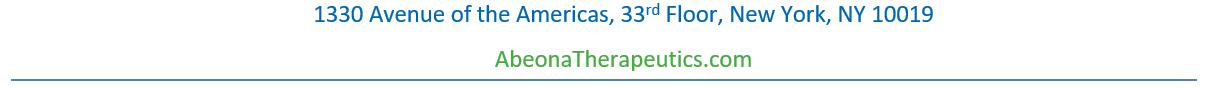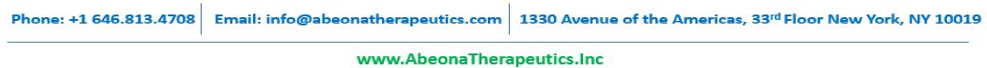 I accept this offer of employment with Abeona Therapeutics Inc.