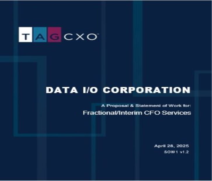 This Independent Contractor Agreement (the “Agreement”) is entered into and effective as of April 28, 2025 between Data I/O Corporation (“Data I/O”) and Theisen Advisory Group LLC d/b/a TAG CXO (“Contractor”). Data I/O requires certain specific, temporary professional services which Contractor is ready, willing and able to perform. The parties, intending to become legally bound, hereby agree as follows: