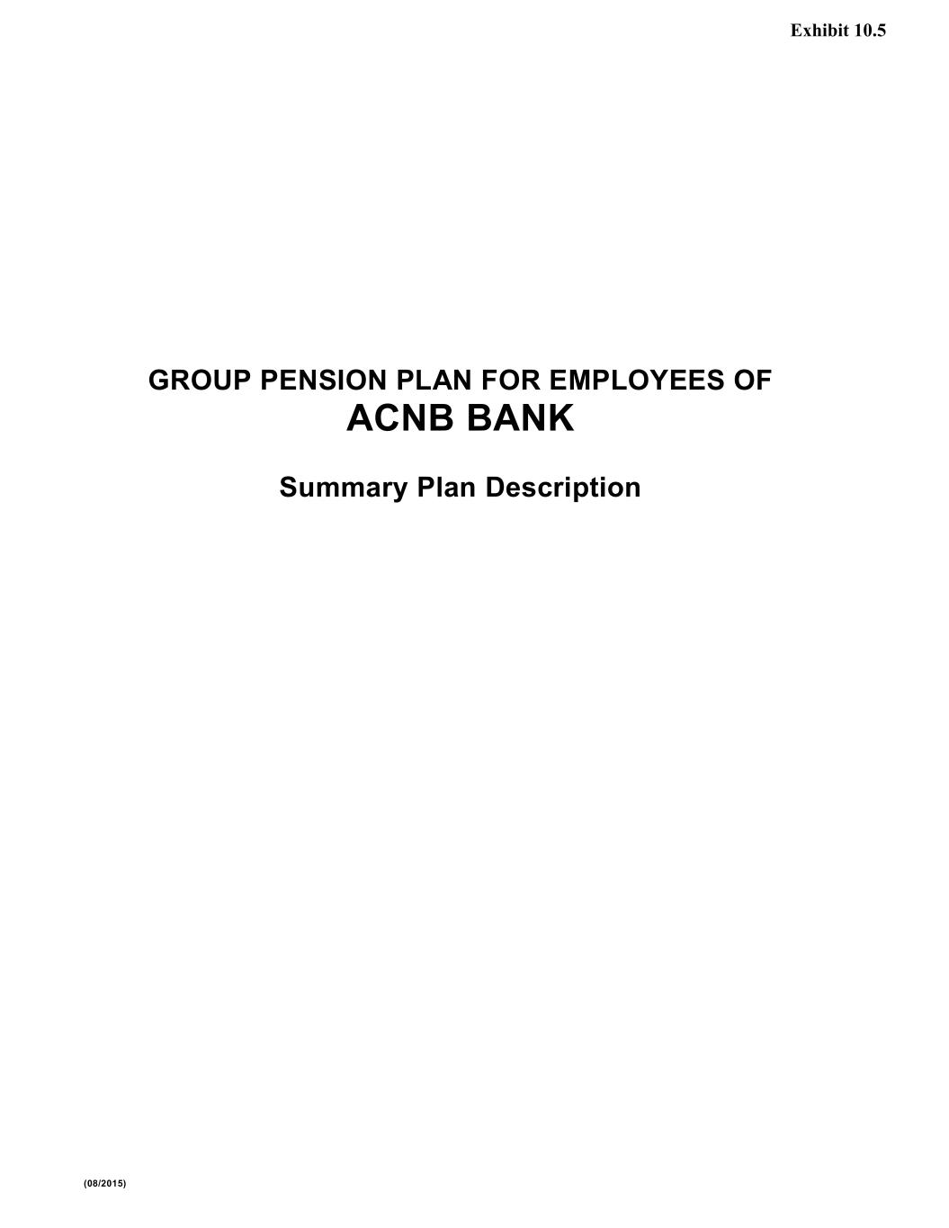 GROUP PENSION PLAN FOR EMPLOYEES OF ACNB BANK Summary Plan Description (08/2015) Exhibit 10.5