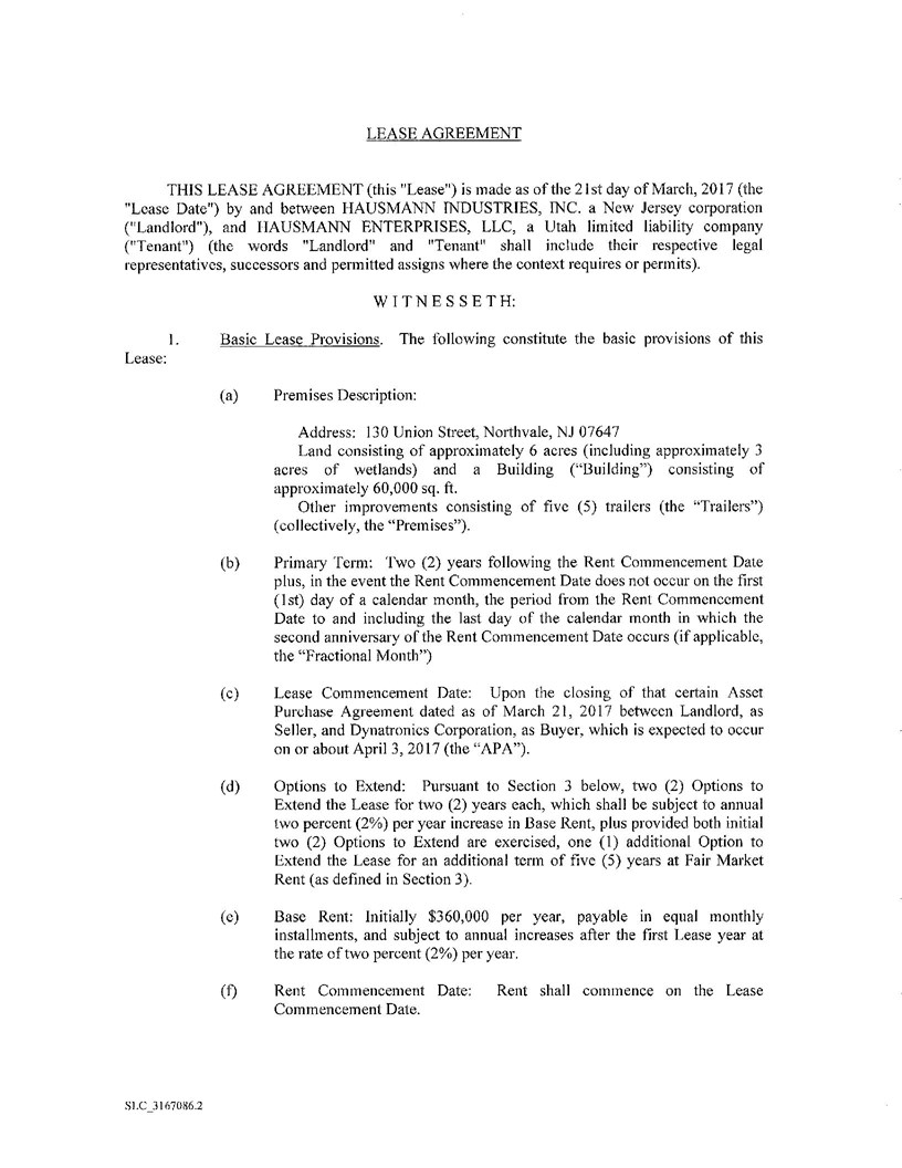 EX-10.1 2 exhibit10-1.htm EXHIBIT 10.1 Dynatronics Corp.: Exhibit 10.1 - Filed by newsfilecorp.com
