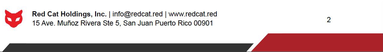 Red Cat Holdings, a Nevada corporation (the “Company,”) is pleased to make this offer of employment pursuant to the following terms and conditions: