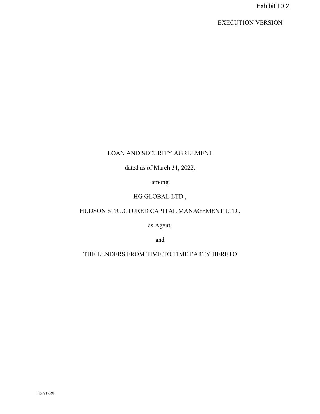 EXECUTION VERSION [[5791959]] LOAN AND SECURITY AGREEMENT dated as of March 31, 2022, among HG GLOBAL LTD., HUDSON STRUCTURED CAPITAL MANAGEMENT LTD., as Agent, and THE LENDERS FROM TIME TO TIME PARTY HERETO