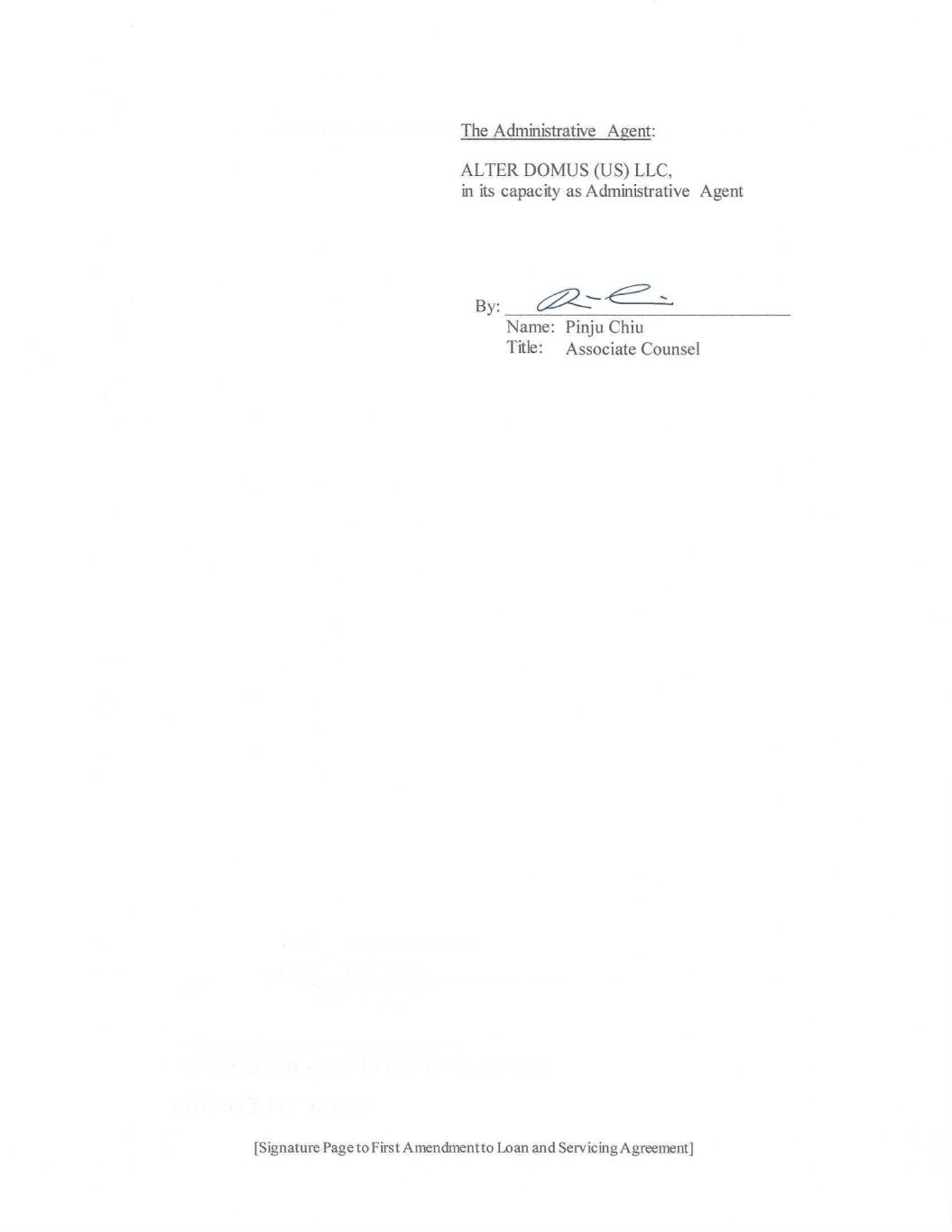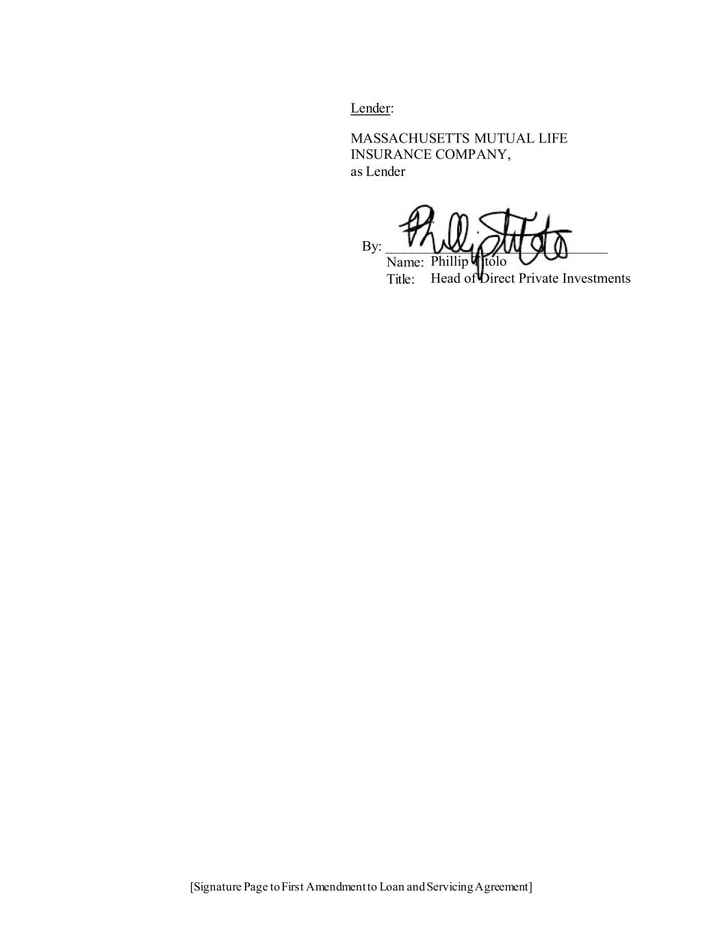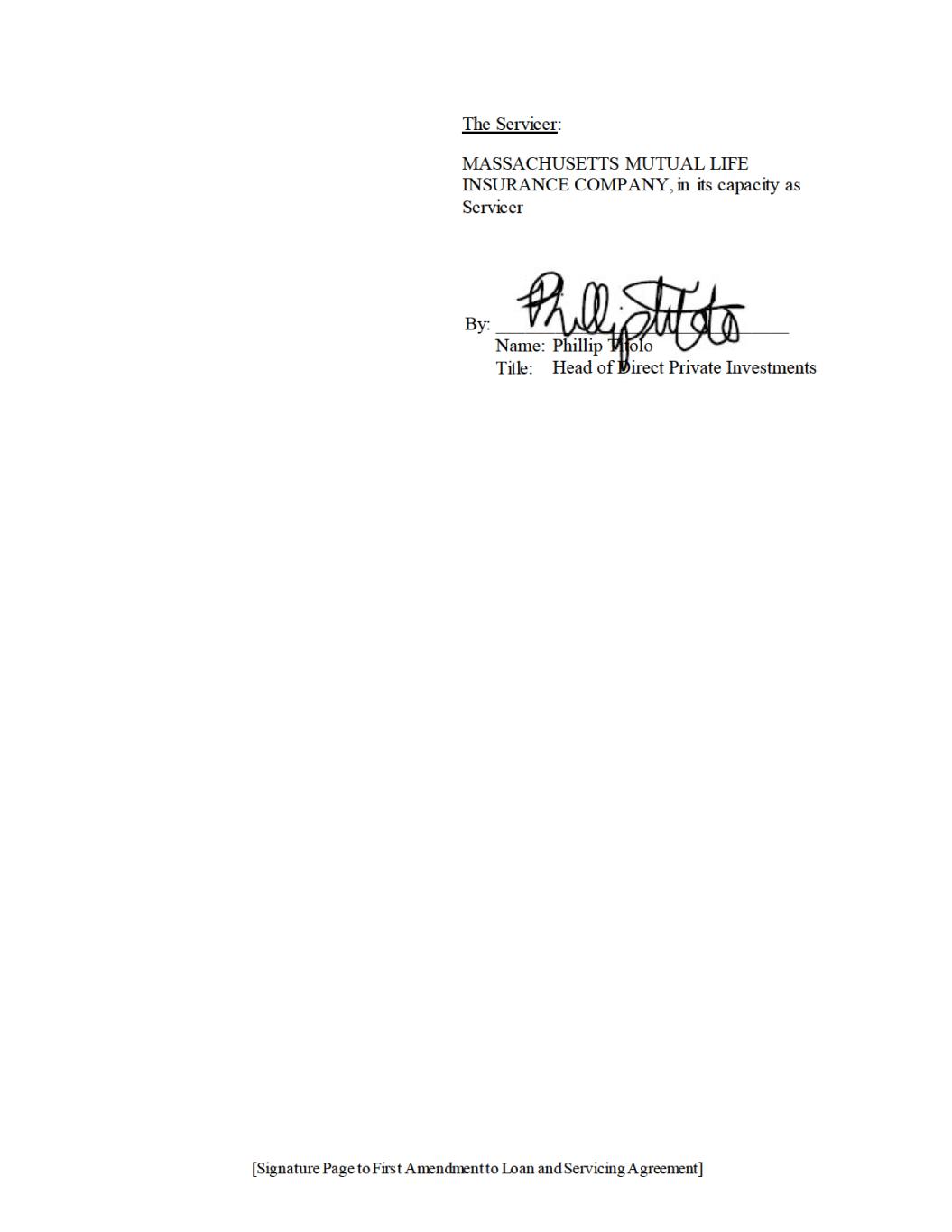 [Signature Page to First Amendment to Loan and Servicing Agreement] Lender: MASSACHUSETTS MUTUAL LIFE INSURANCE COMPANY, as Lender By: _______________________________ Name: Title: Phillip Titolo Head of Direct Private Investments
