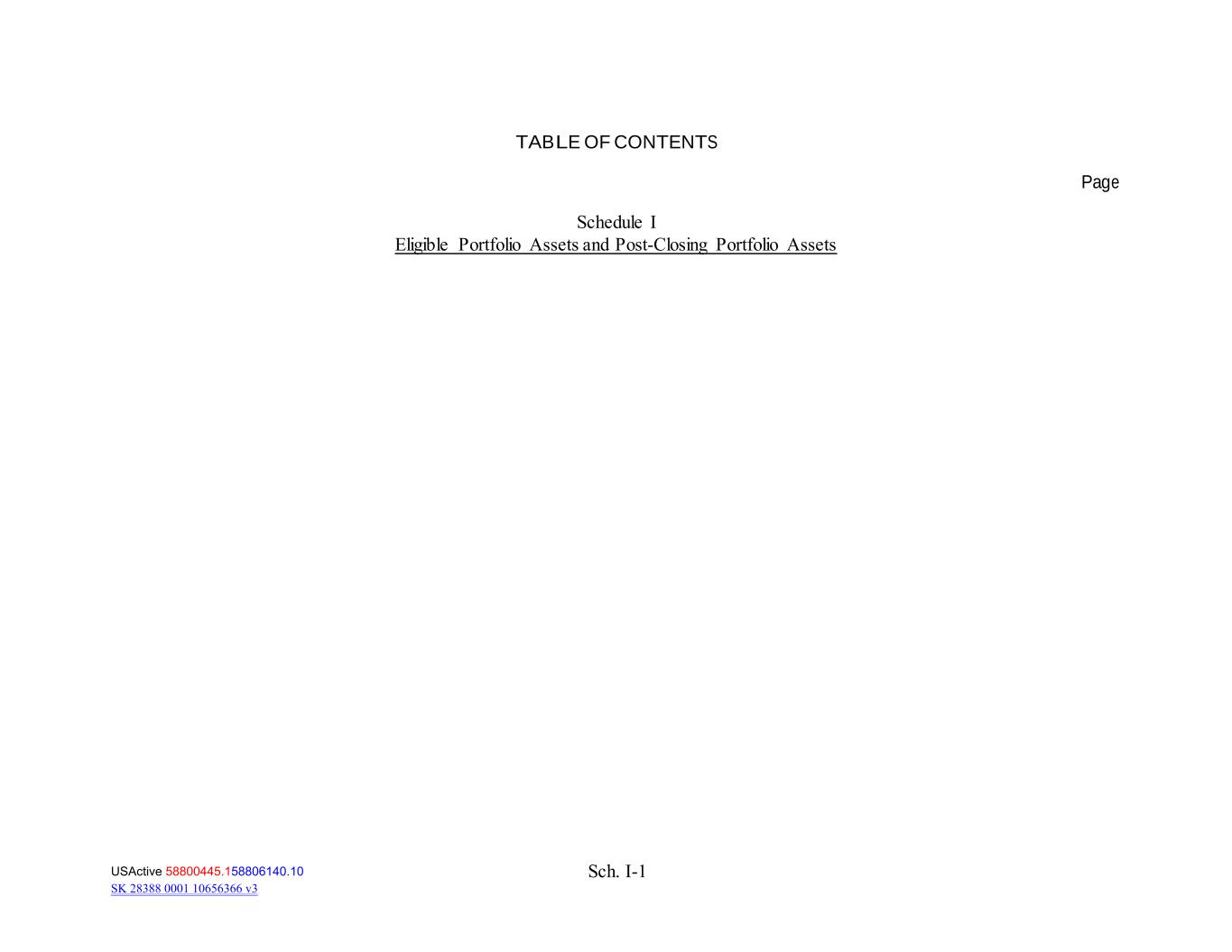 Sch. I-1 TABLE OF CONTENTS Page Schedule I Eligible Portfolio Assets and Post‐Closing Portfolio Assets USActive 58800445.158806140.10 SK 28388 0001 10656366 v3