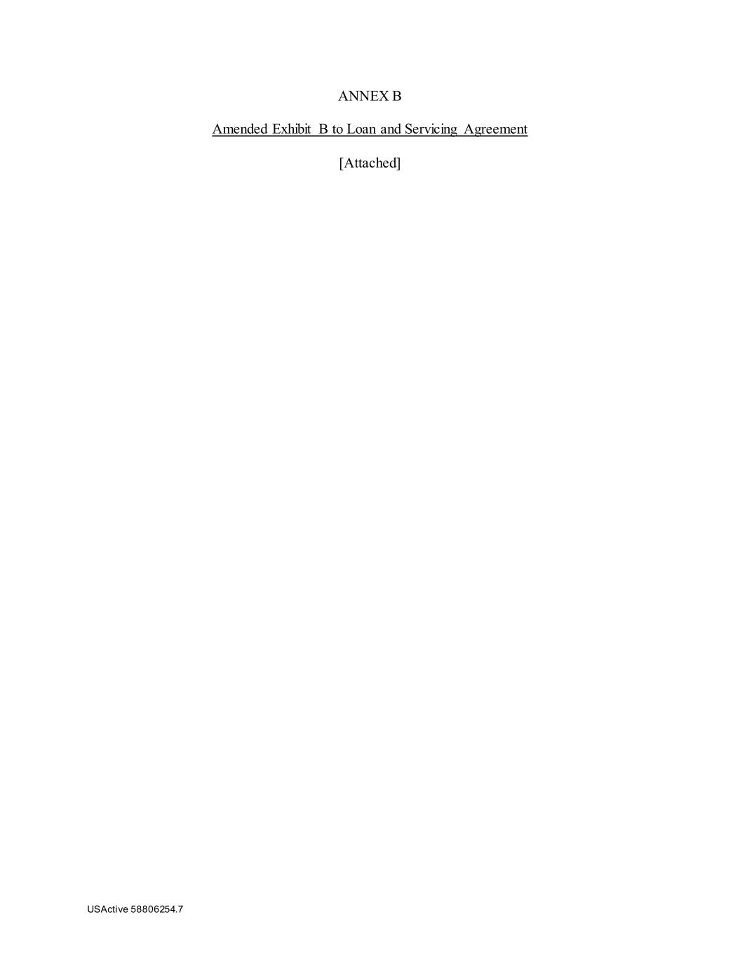 USActive 58806254.7 ANNEX B Amended Exhibit B to Loan and Servicing Agreement [Attached]