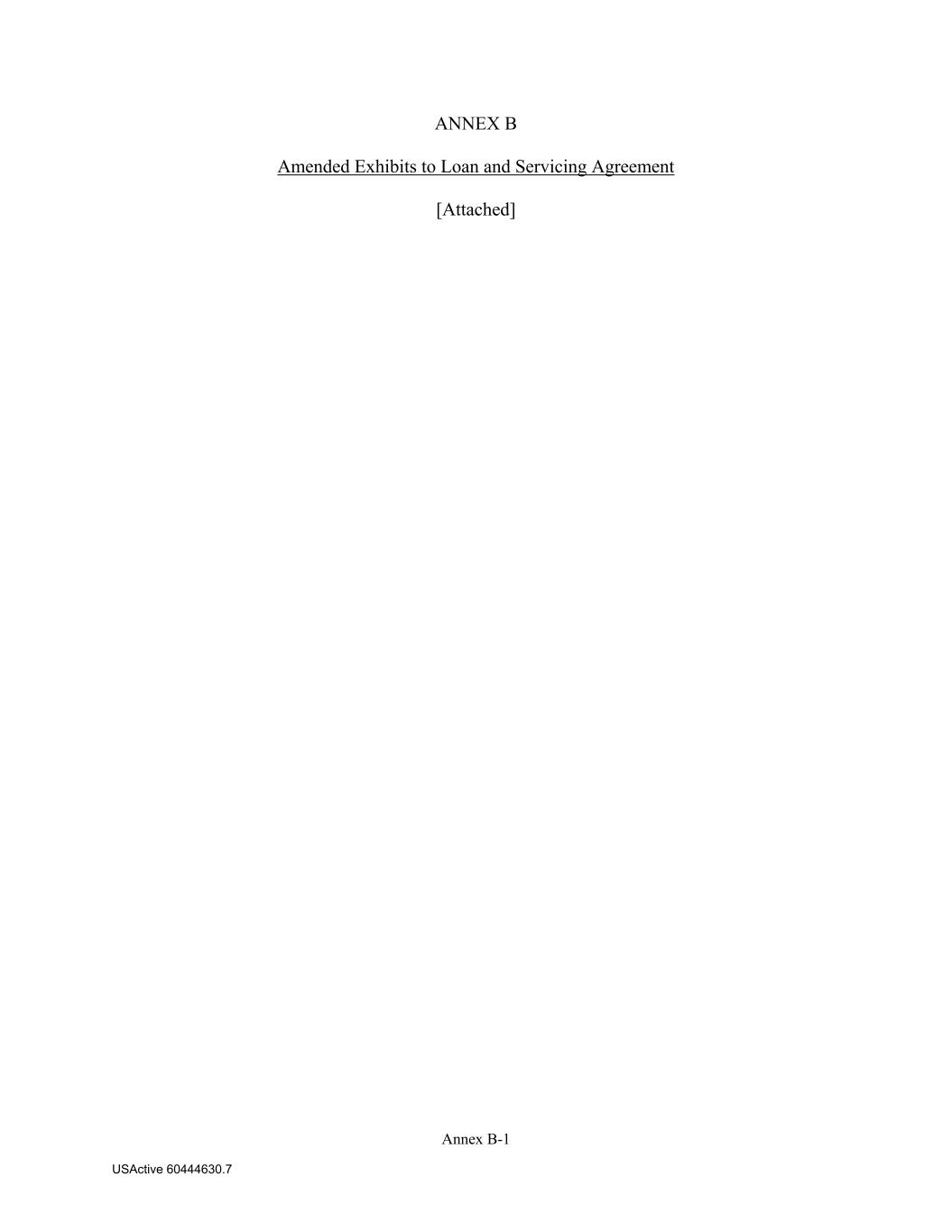 Annex B-1 USActive 60444630.7 ANNEX B Amended Exhibits to Loan and Servicing Agreement [Attached]