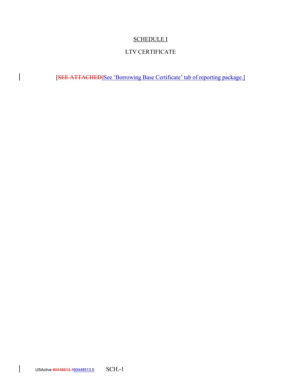 SCHEDULE I LTV CERTIFICATE [SEE ATTACHED]See ‘Borrowing Base Certificate’ tab of reporting package.] USActive 60448513.160448513.5 SCH.-1