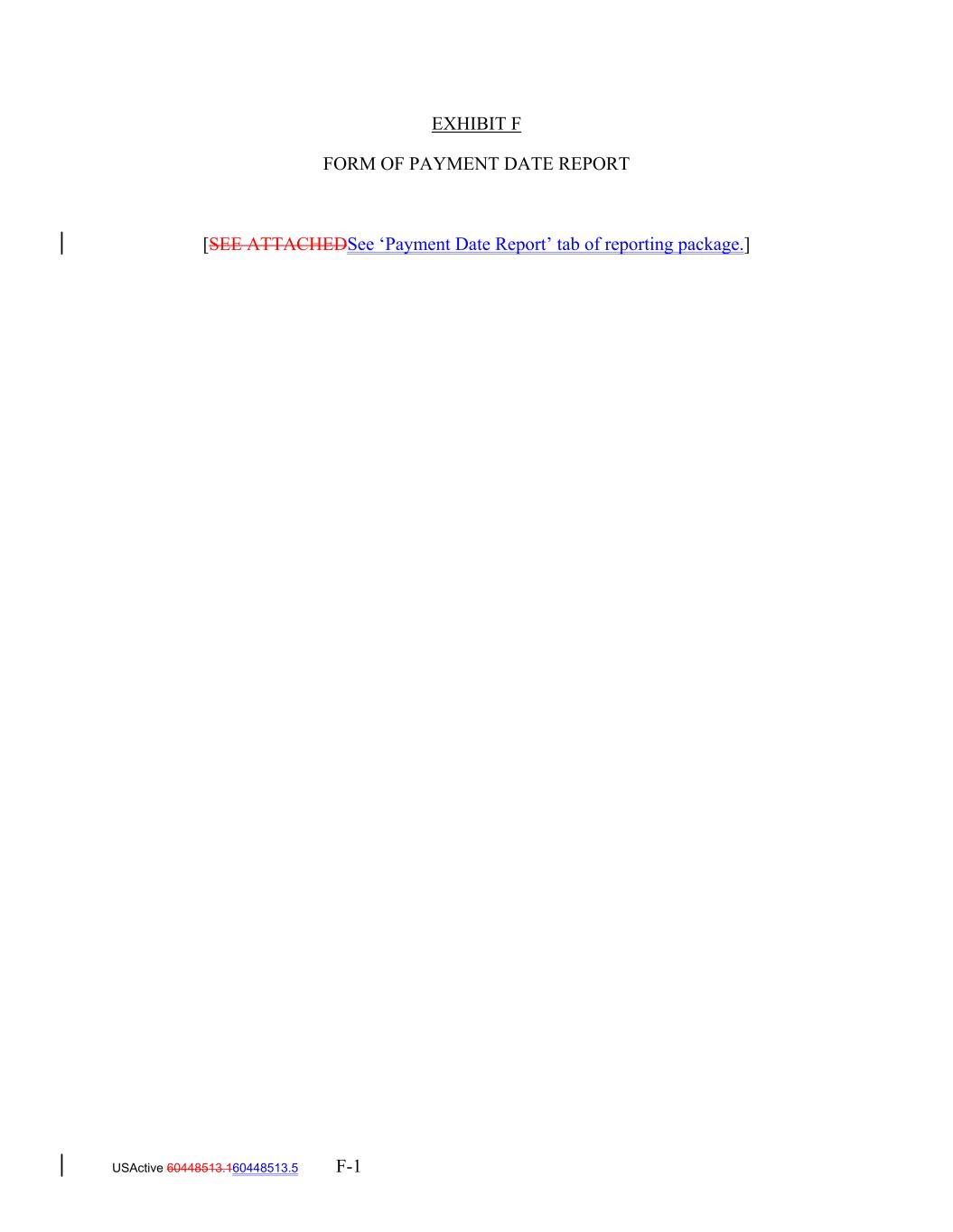 EXHIBIT F FORM OF PAYMENT DATE REPORT [SEE ATTACHEDSee ‘Payment Date Report’ tab of reporting package.] USActive 60448513.160448513.5 F-1